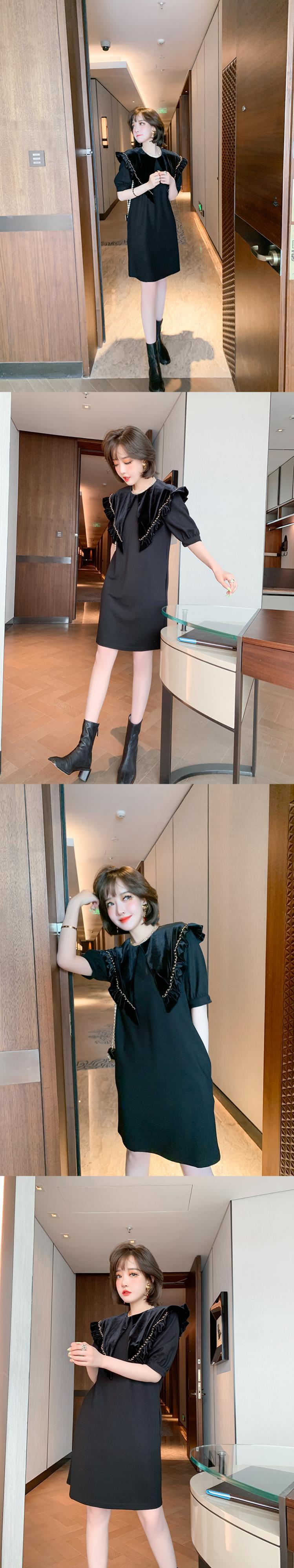チェーン レーススリーブ薄手ドレス オータム ランタンスリーブ 大人ガーリー スウィート キュート カジュアル 秋物 MIUCO66129717064