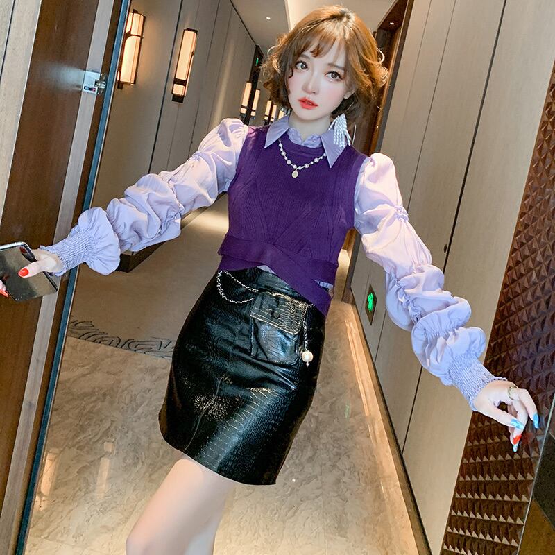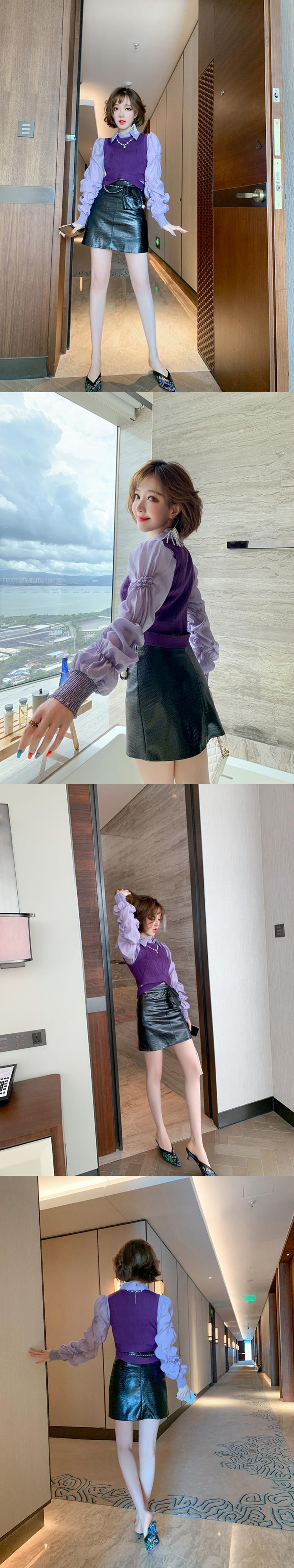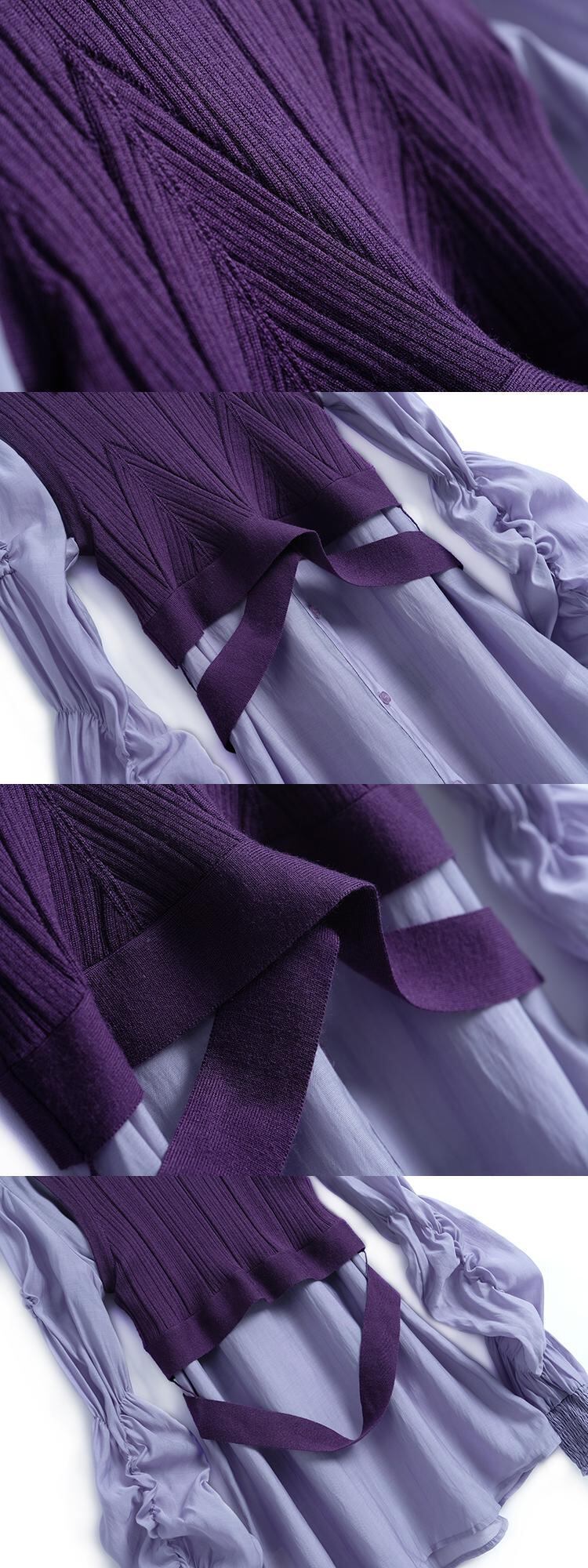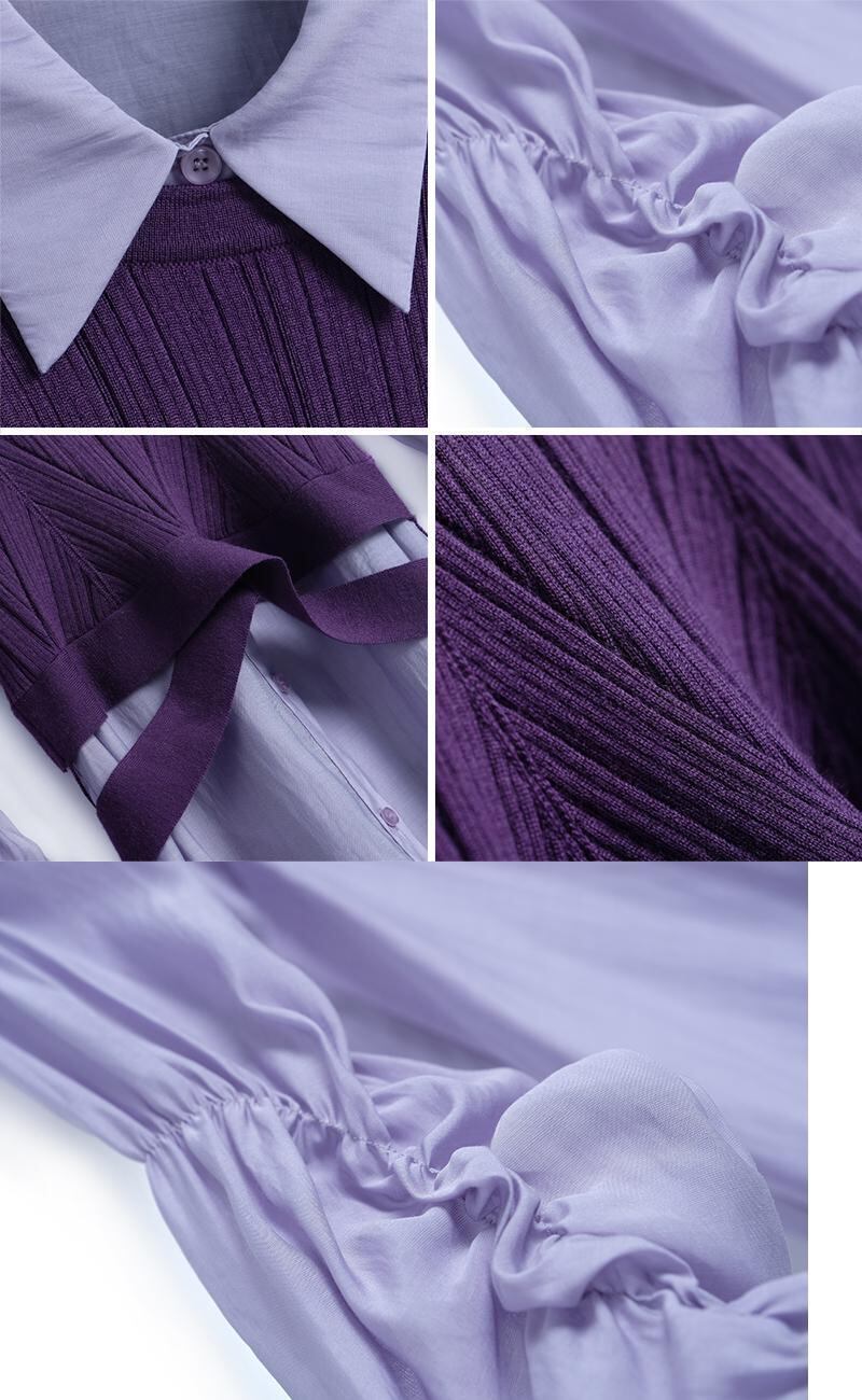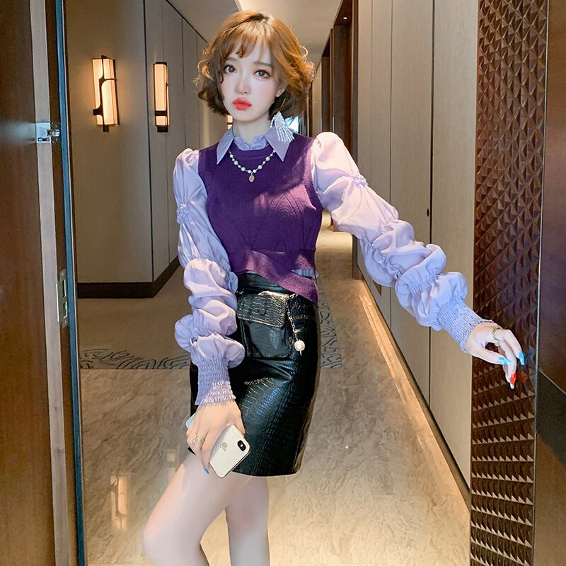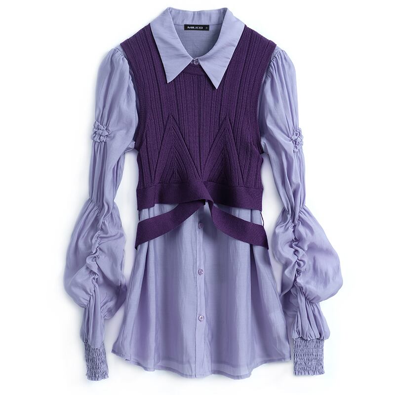 ショートニットプリーツシャツ ブラウス オータム ロング 秋物 MIUCO47685513342