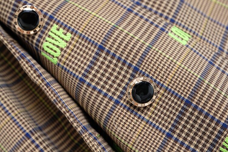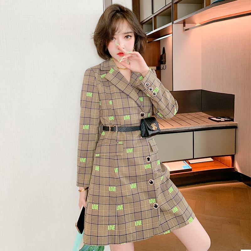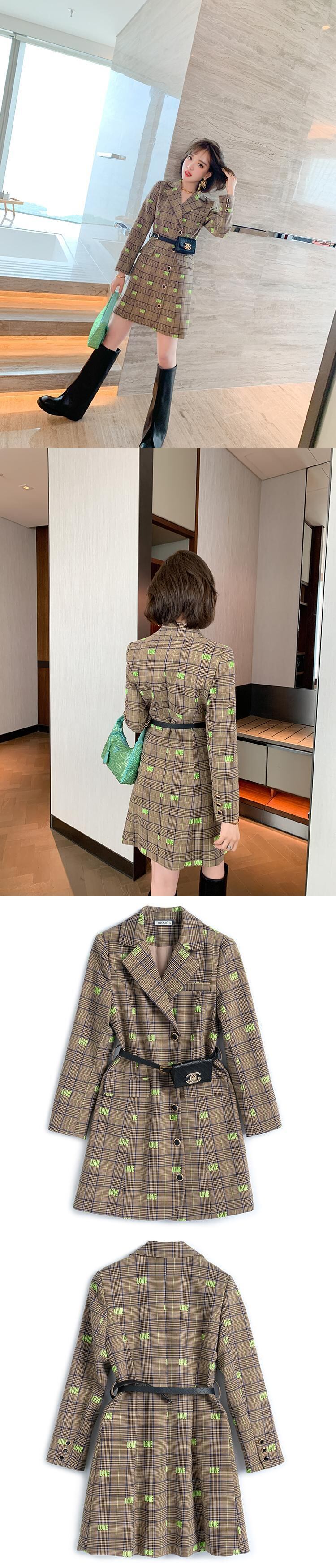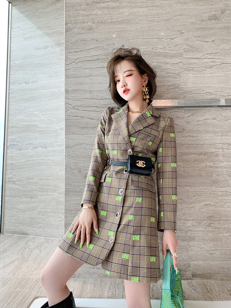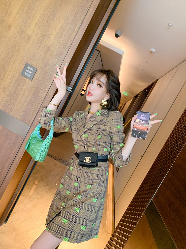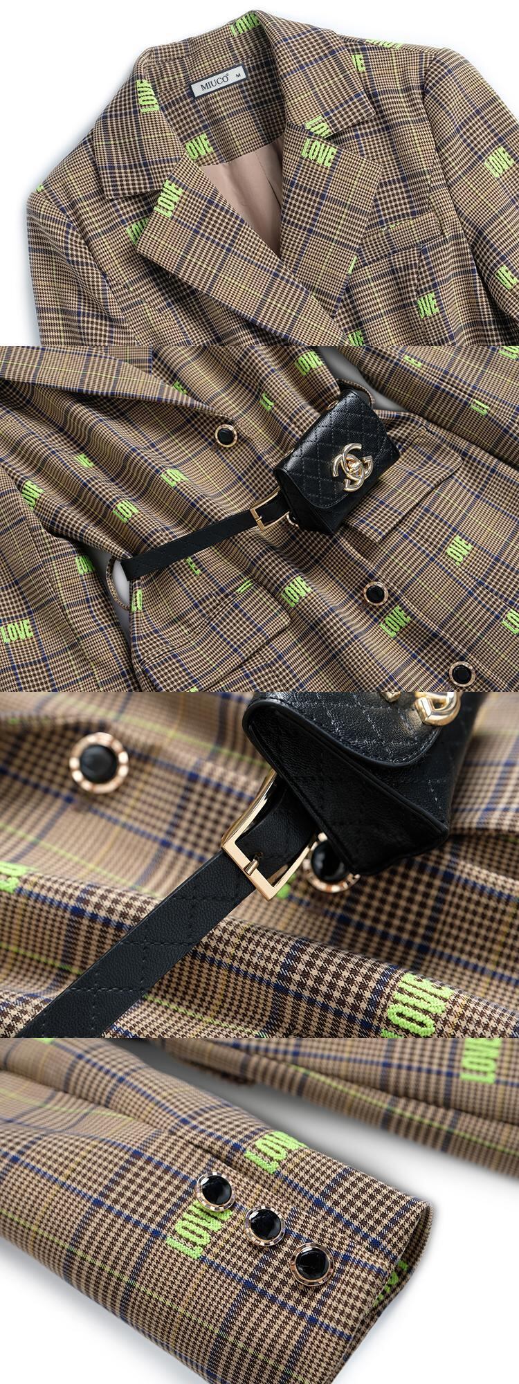 格子柄刺繍ウェストブレザー ドレス オータム 秋物 MIUCO73880041369