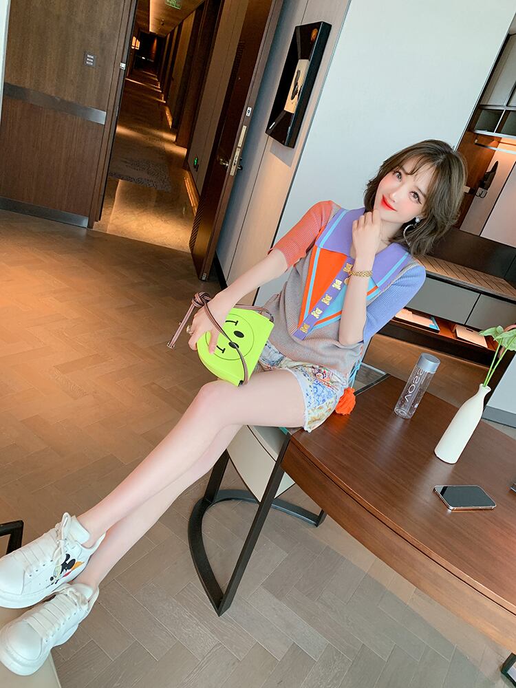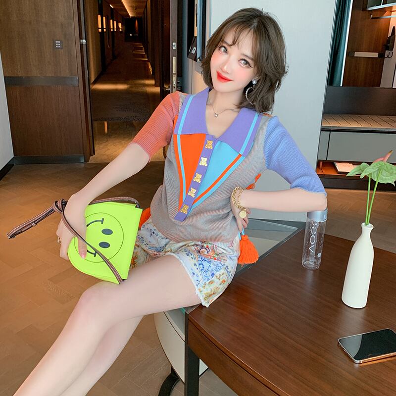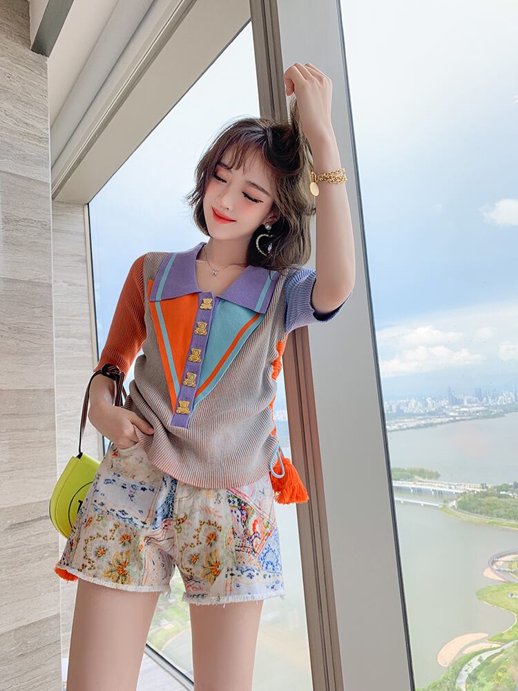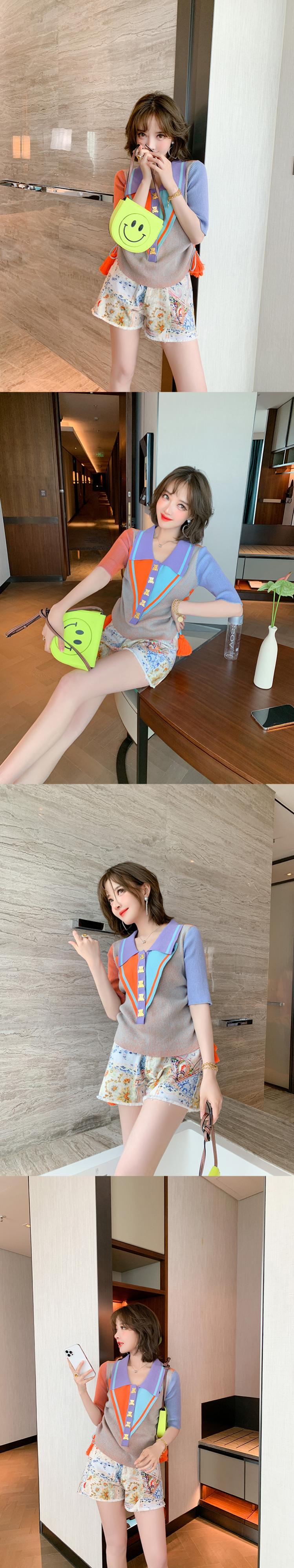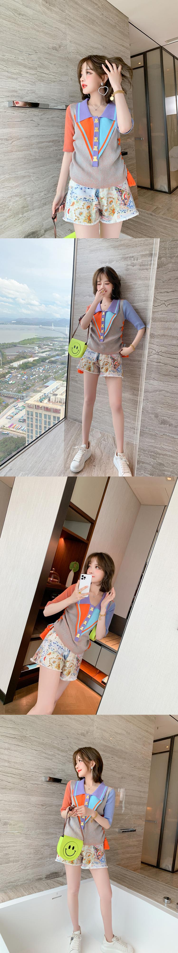 カラーボタンセーター プリントショーツ サマー 夏物 ブルマー MIUCO84164484050