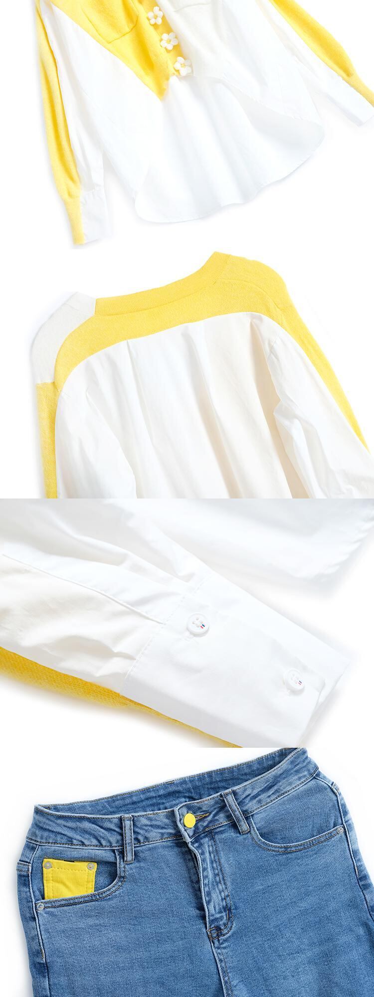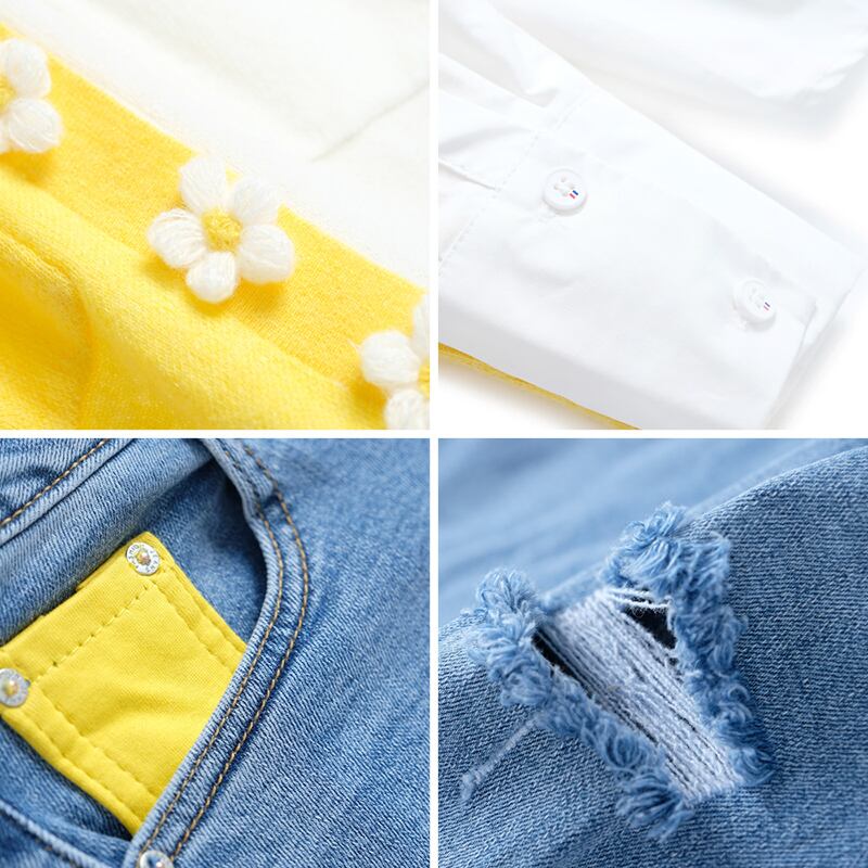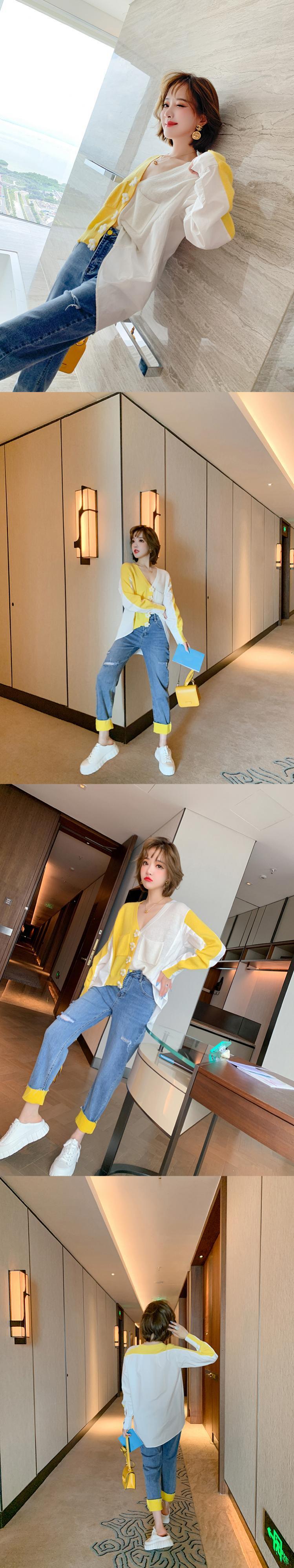 カラーVネックシングルFlowerデザイン ボタンカーディガンジーンズ オータム 秋物 フラワーデザイン ステッチ MIUCO87392451186