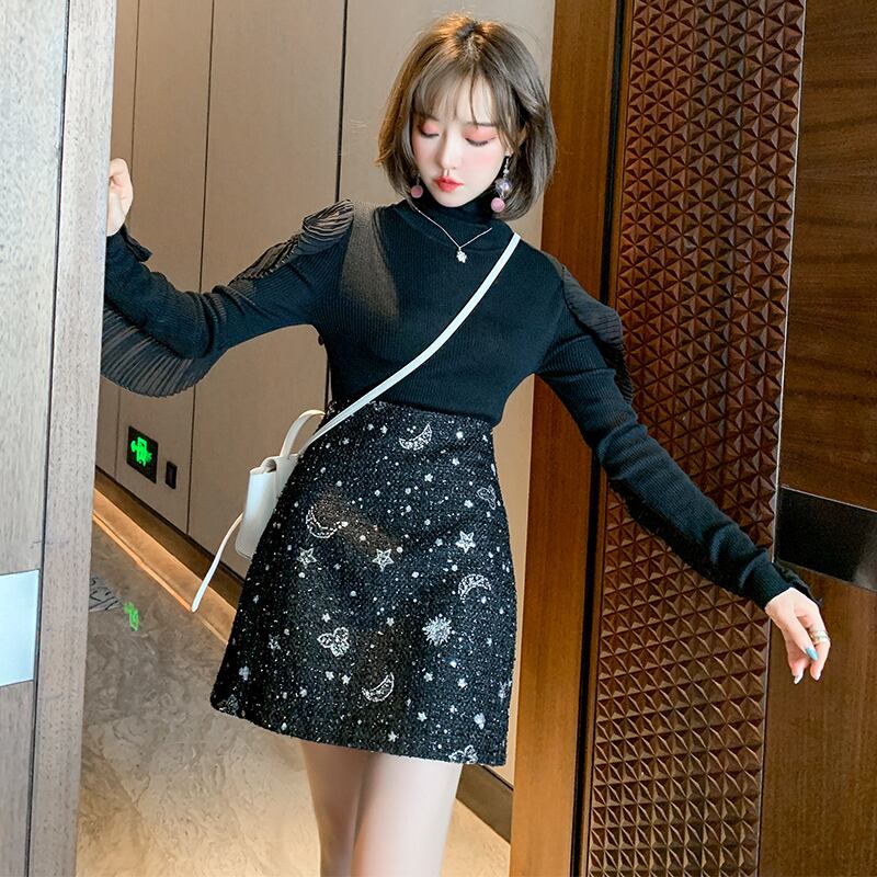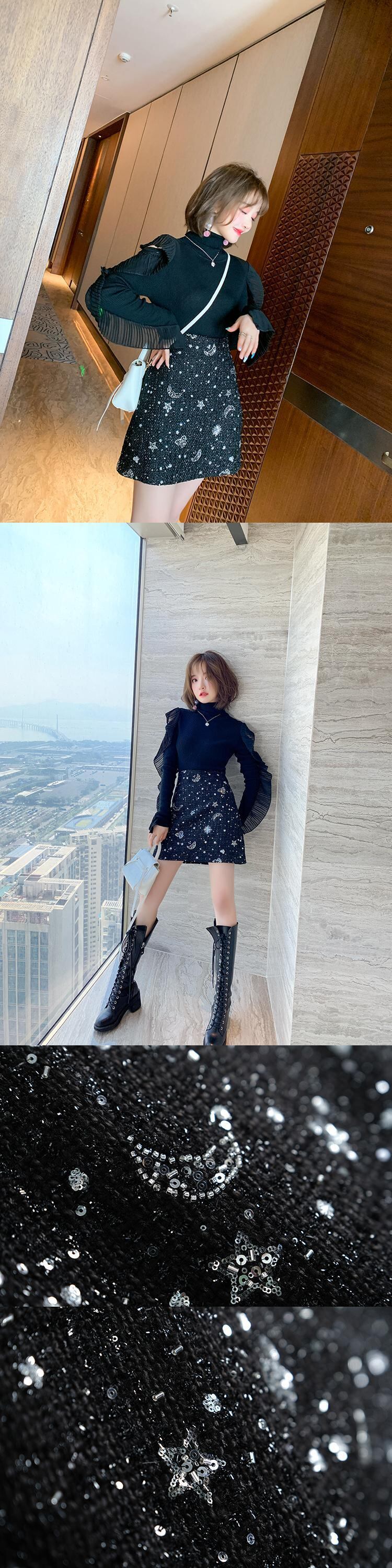 パターンハイウェストウェストAラインツィードスカート ウィンター 冬物 MIUCO54609003373