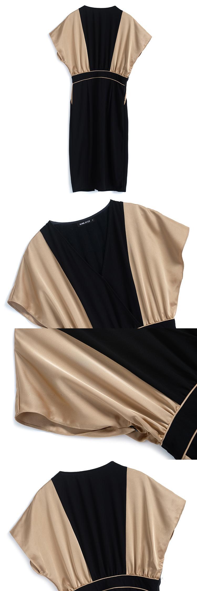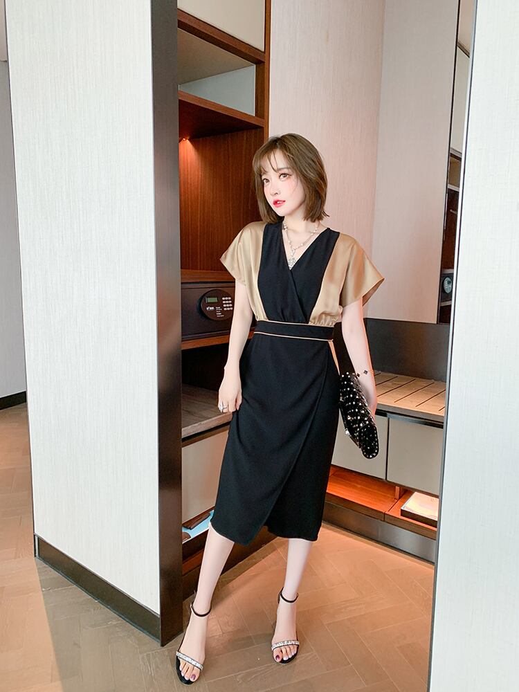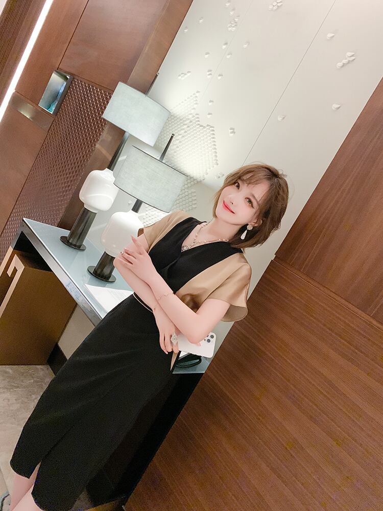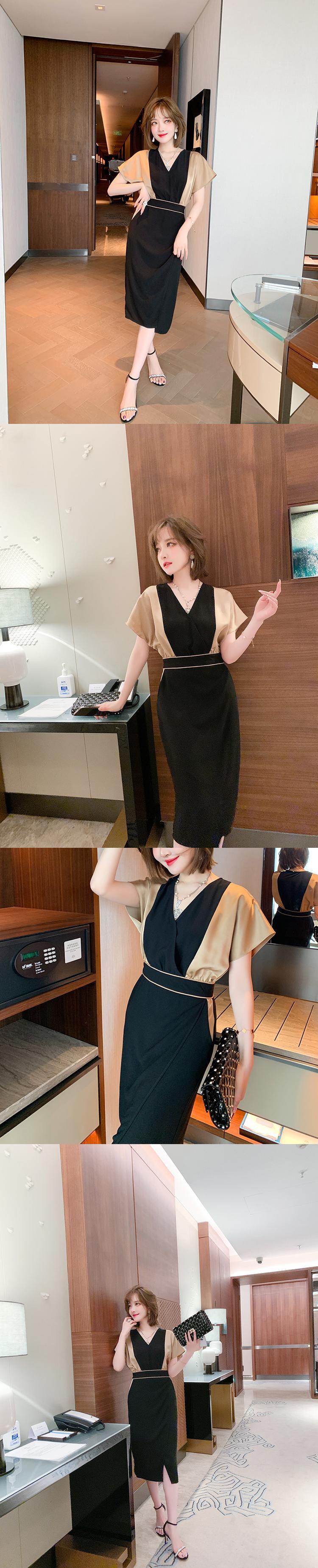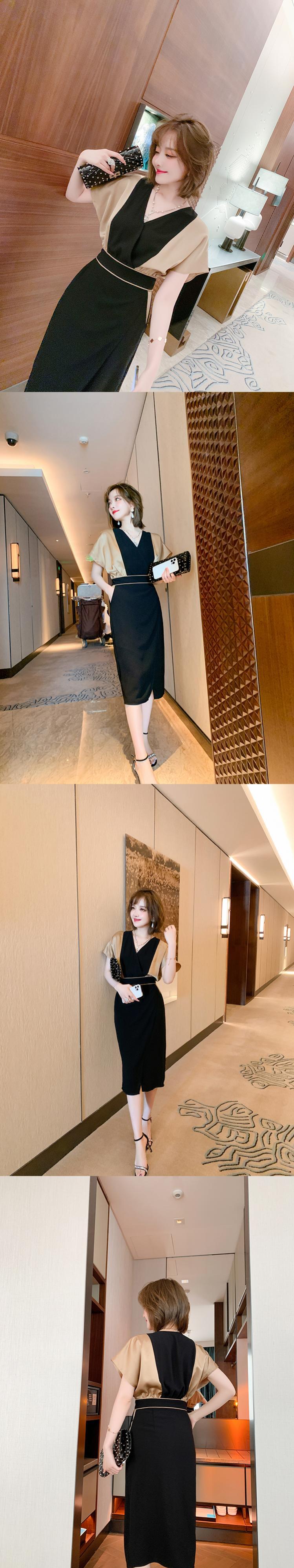 カラーVネックハイウェストウェストドレス レディースサマースタイル 夏物 ステッチ MIUCO36410462406