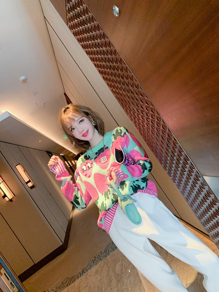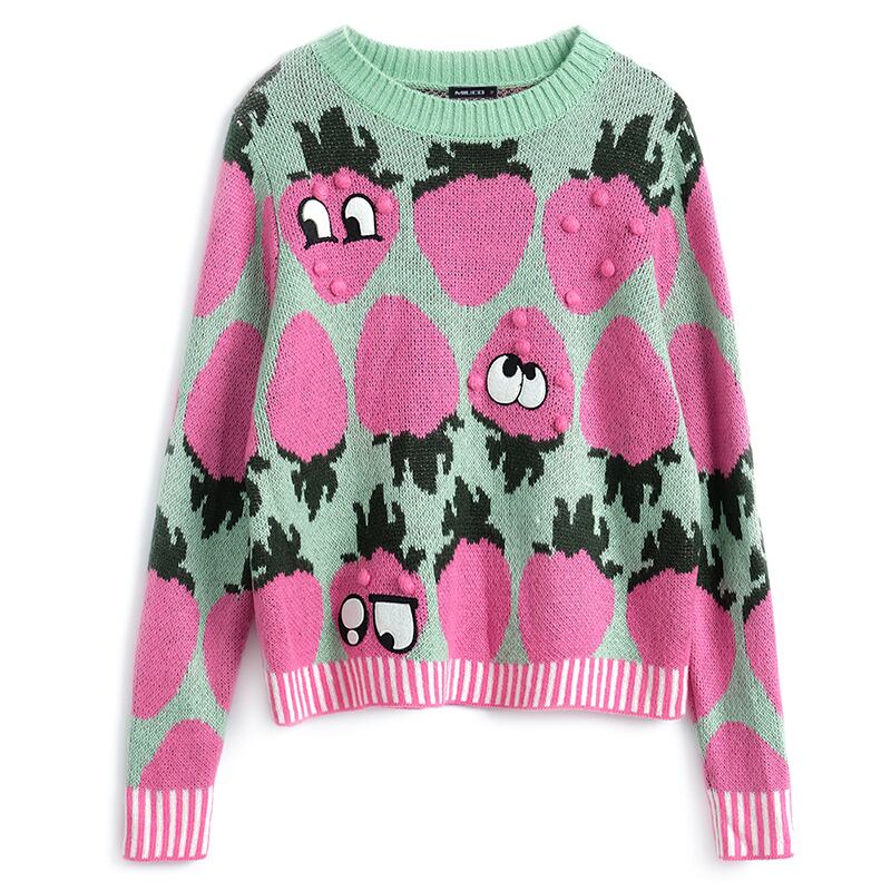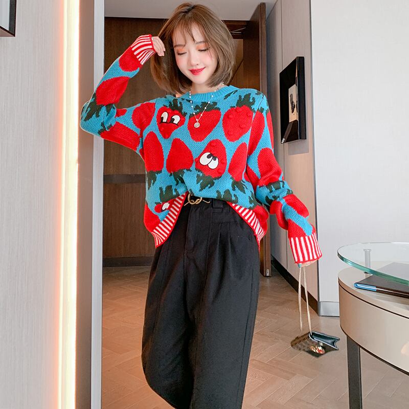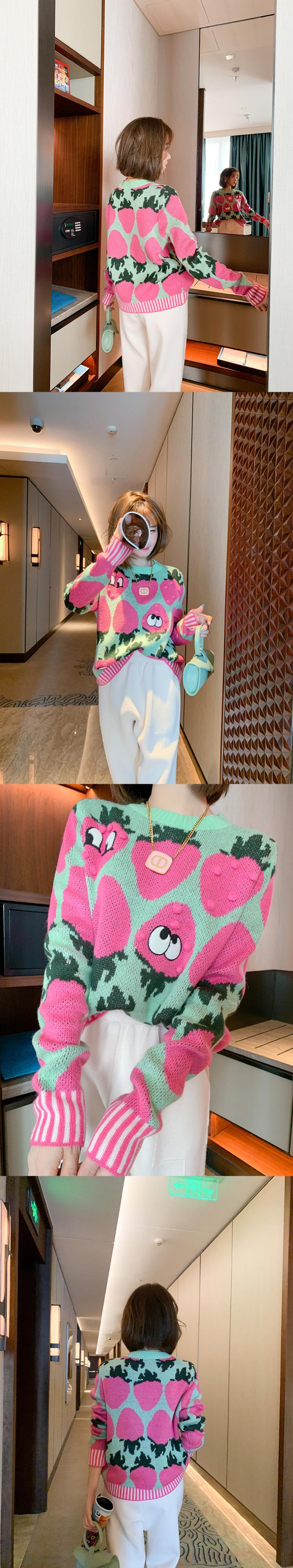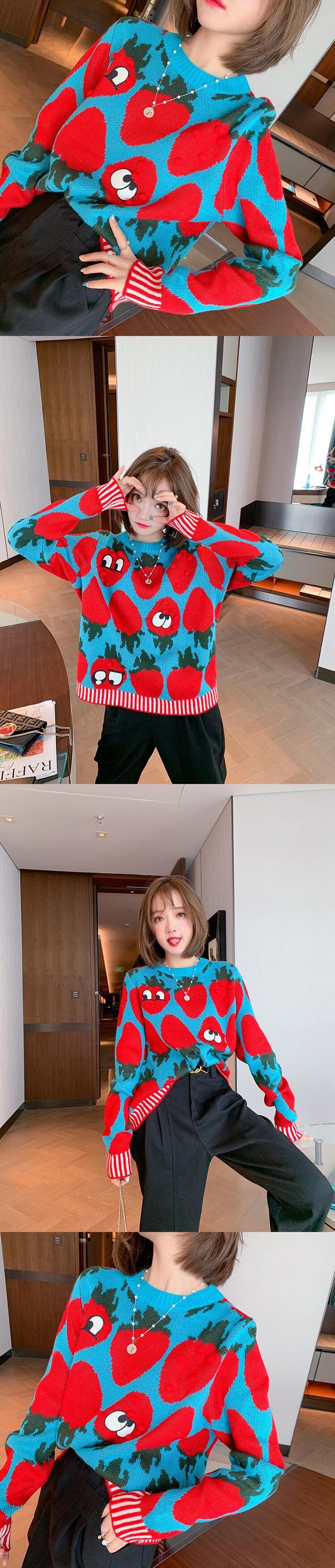 ジャカードパターンラウンドネックルーズスタイルセーター ウィンター 大人ガーリー スウィート キュート カジュアル 冬物 Oネック MIUCO80095109937