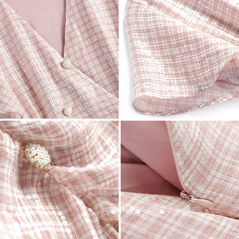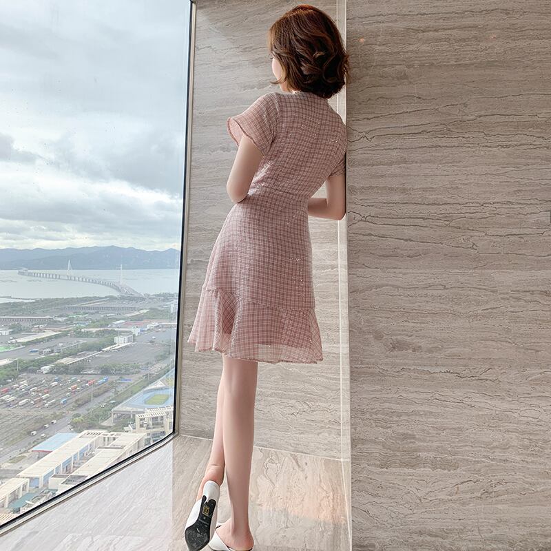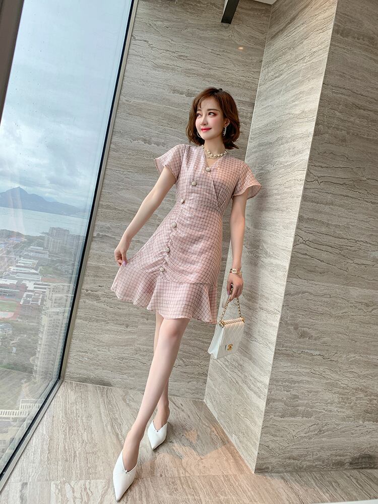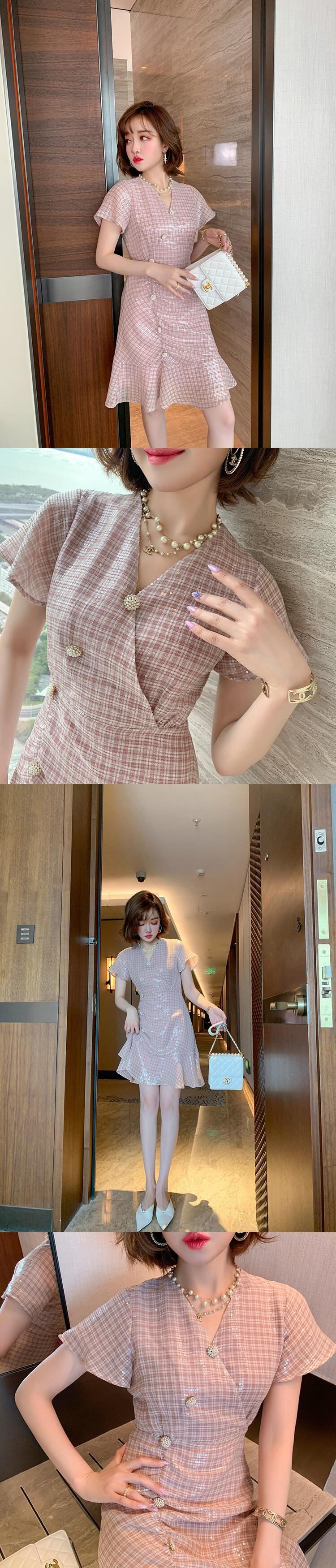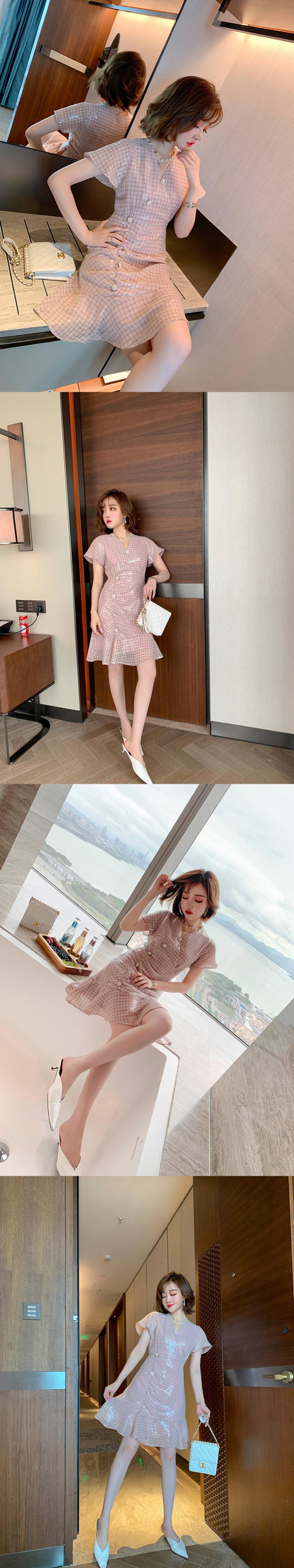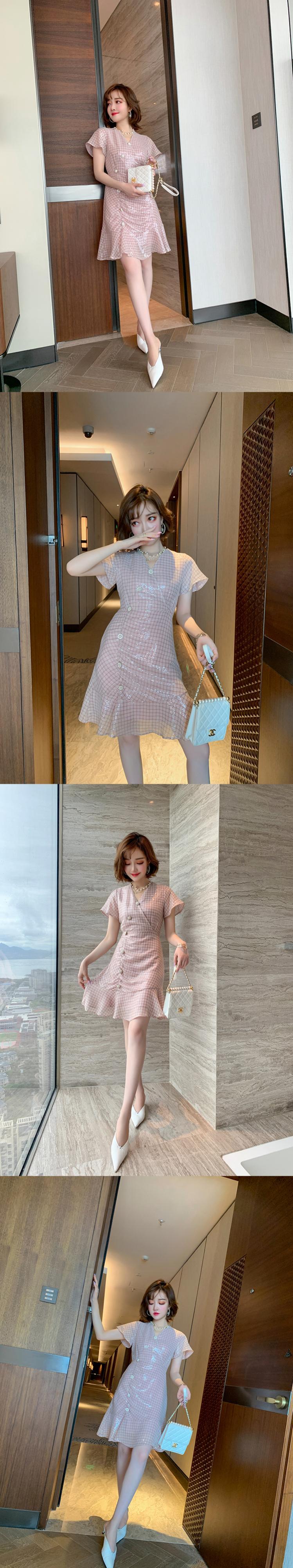 格子柄スリーブバックルドレス サマー 夏物 ステッチ MIUCO29482713447