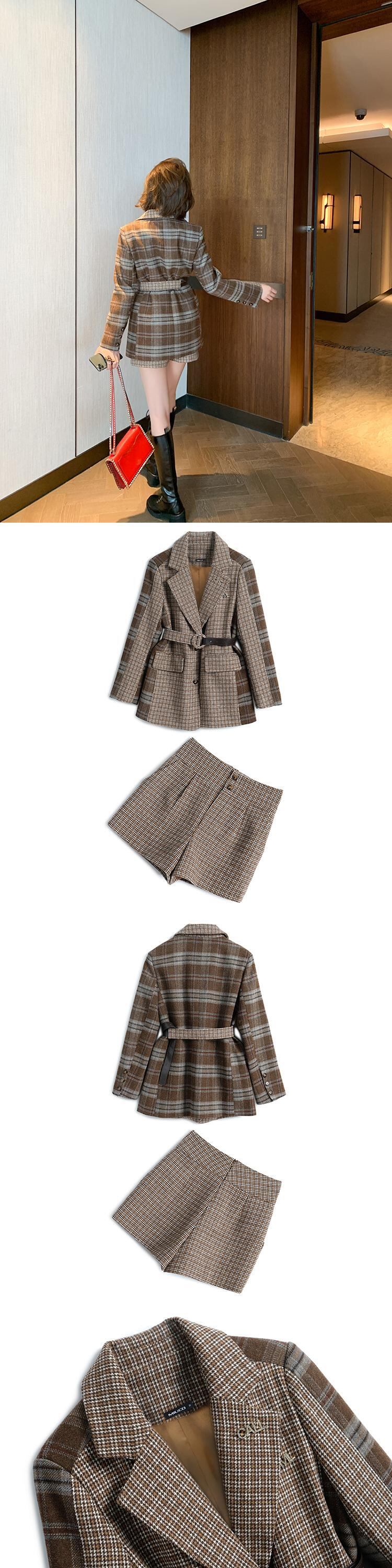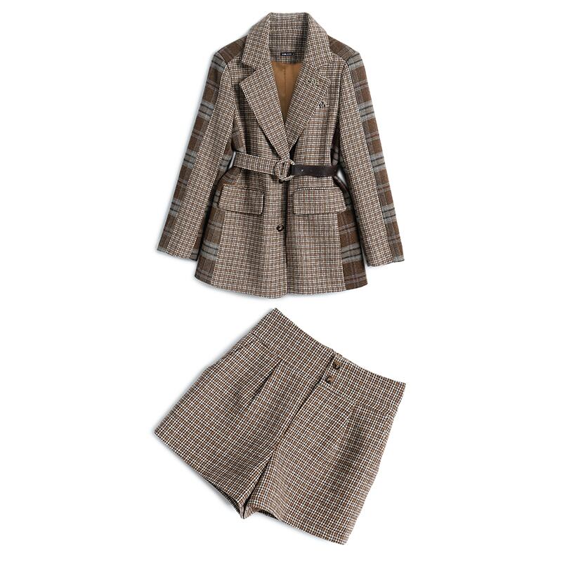 格子柄カラージャケット ショーツ ウィンター 冬物 ハーネス ベルト ブルマー ステッチ MIUCO55560965833