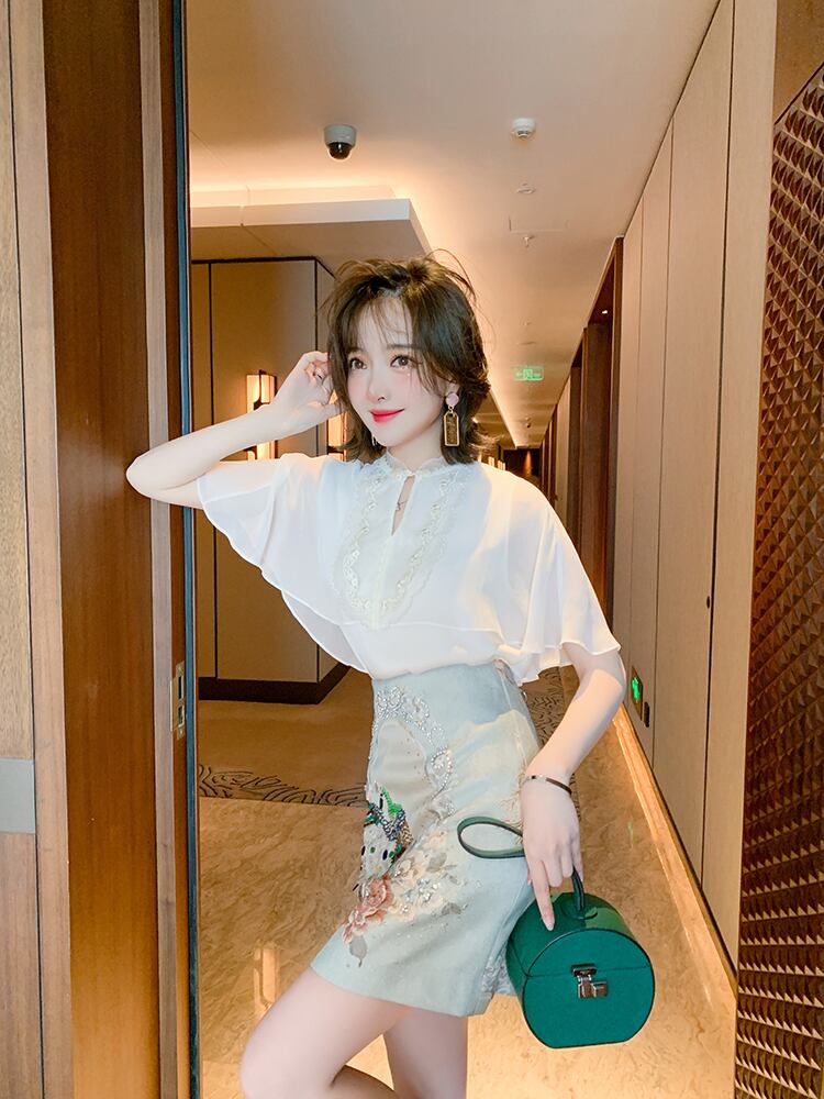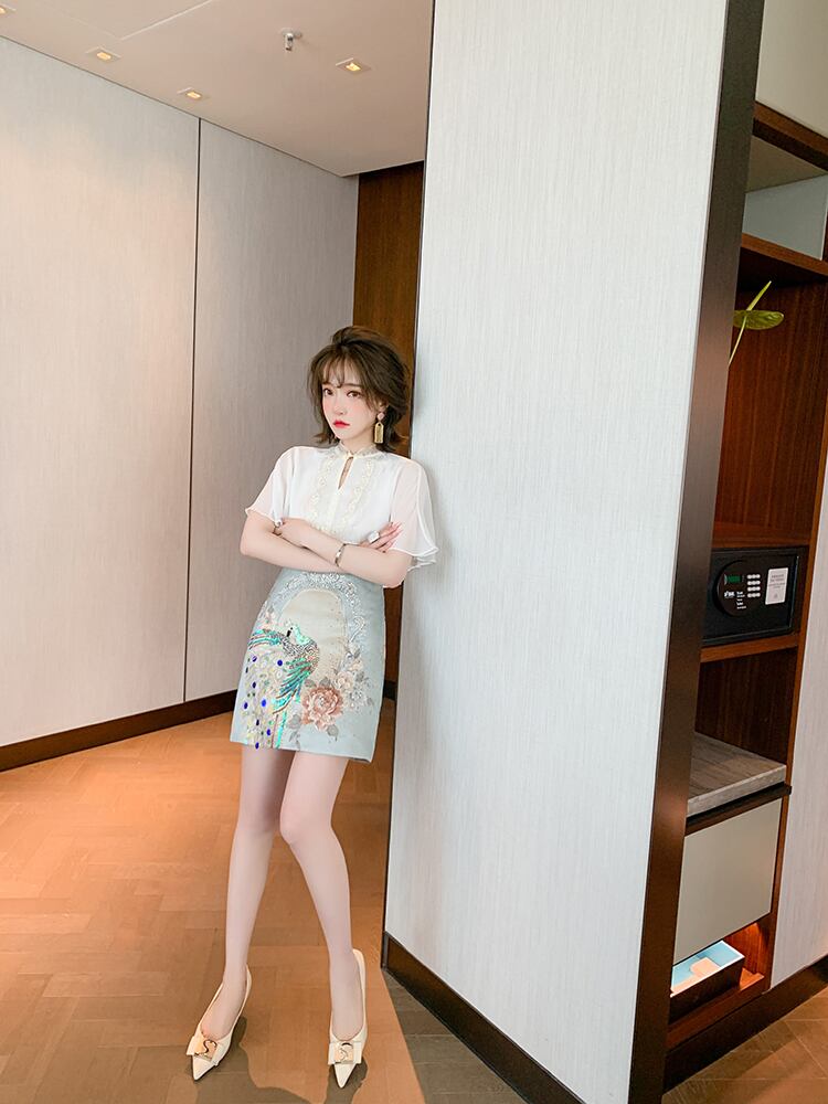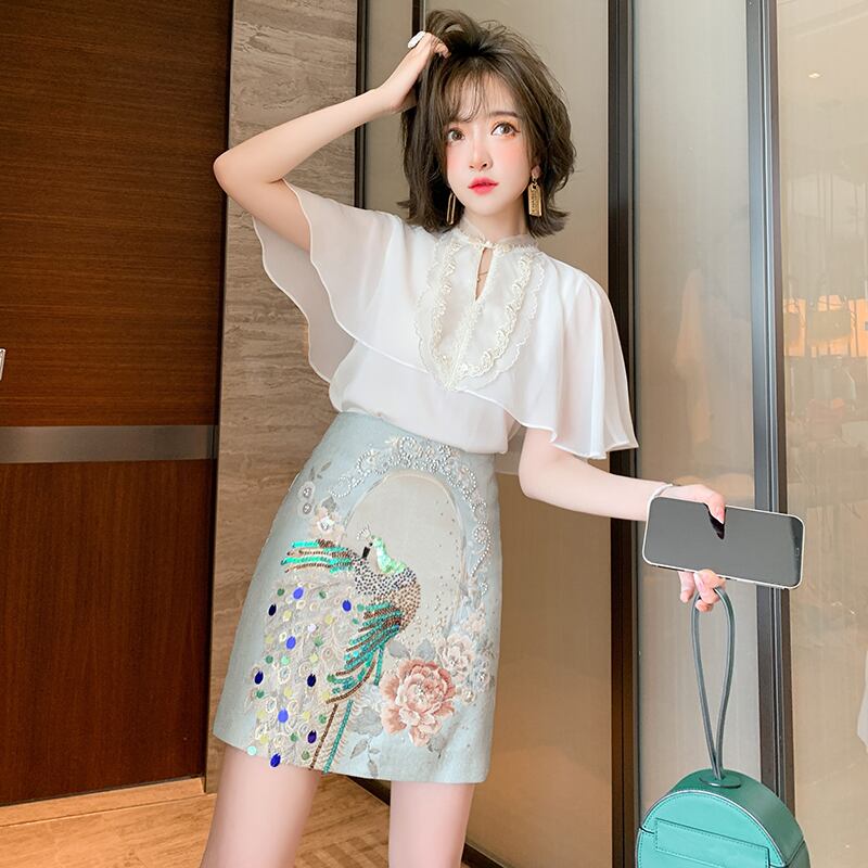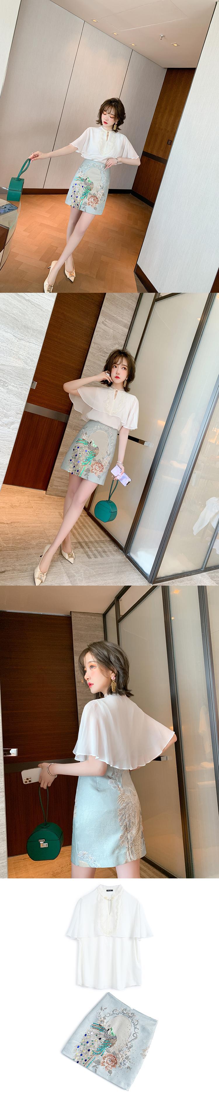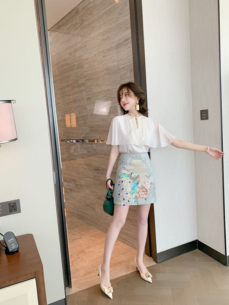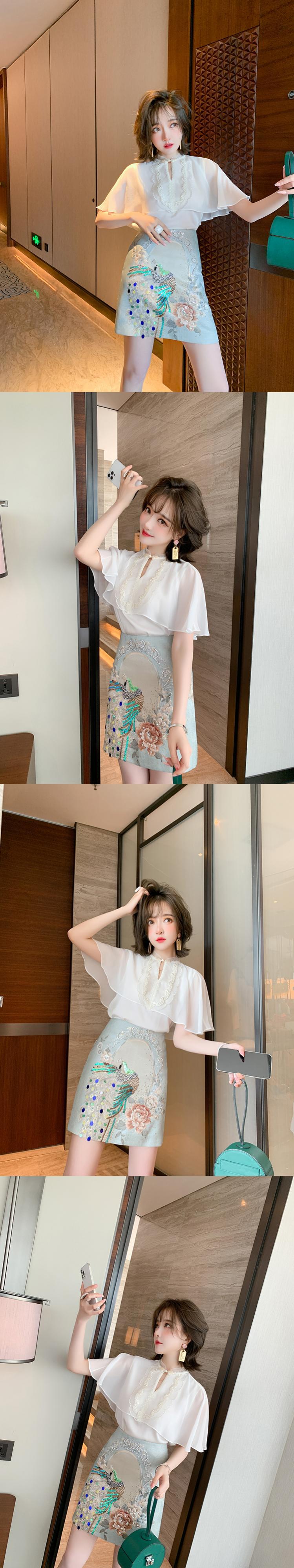 スタンダードバックルトップス ジャカードスカート サマースタイル レッド レトロ 刺繍 夏物 シルク MIUCO7107046783