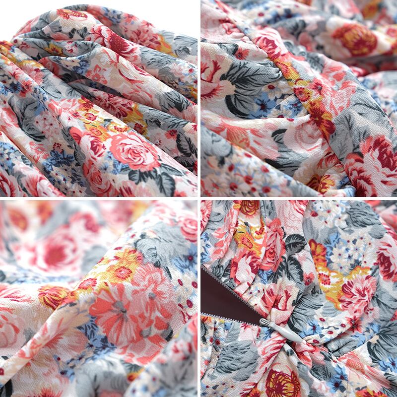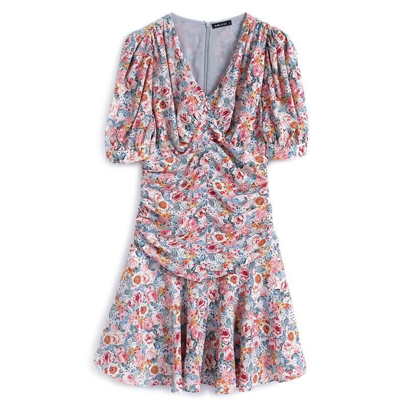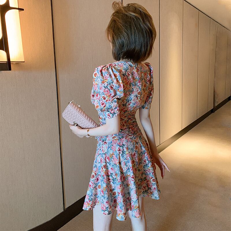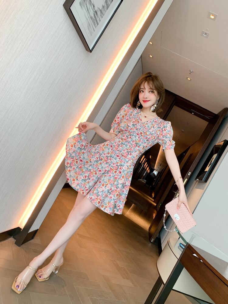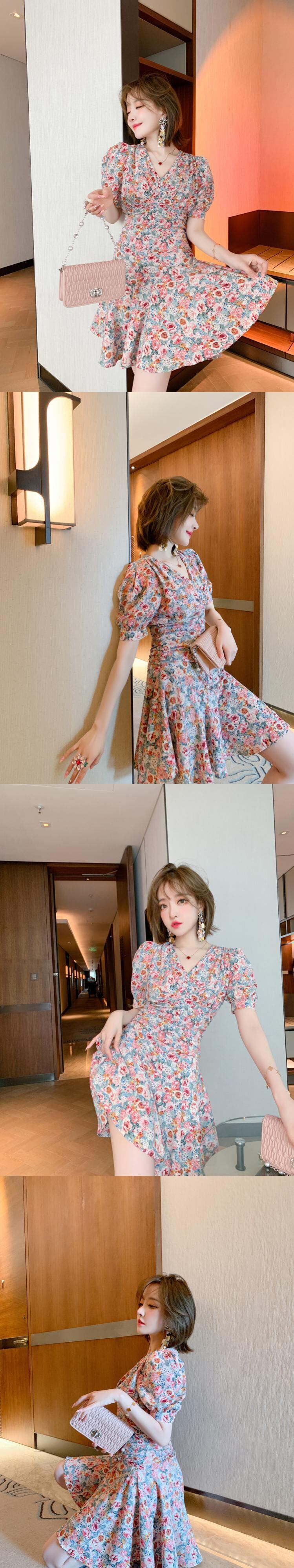 Vネックハイウェストウェストフローラルドレス サマースタイル 夏物 花柄 MIUCO17142684674