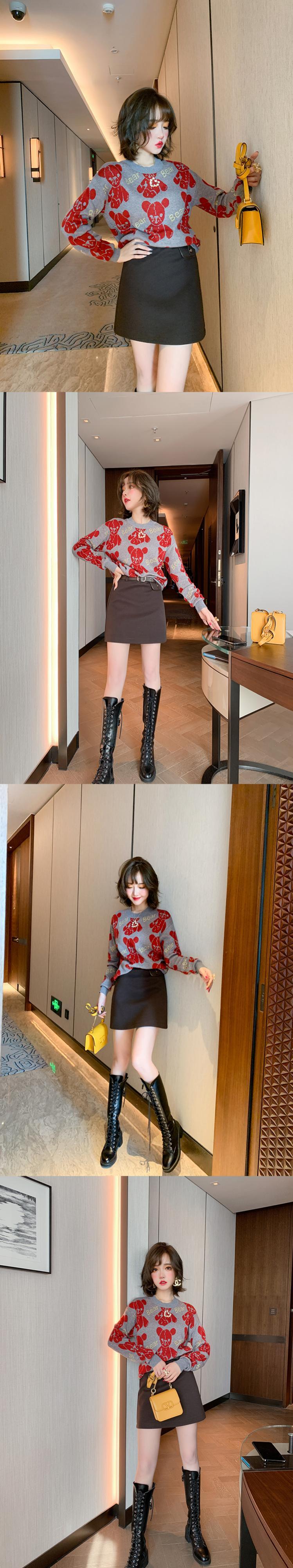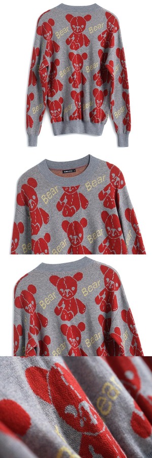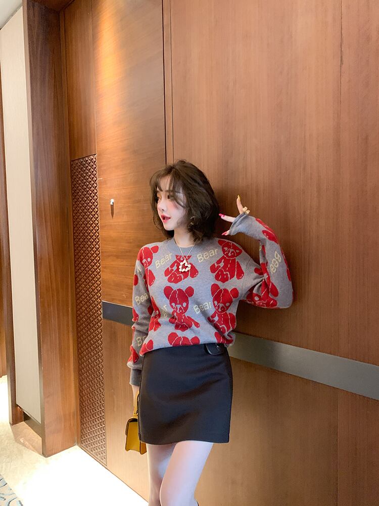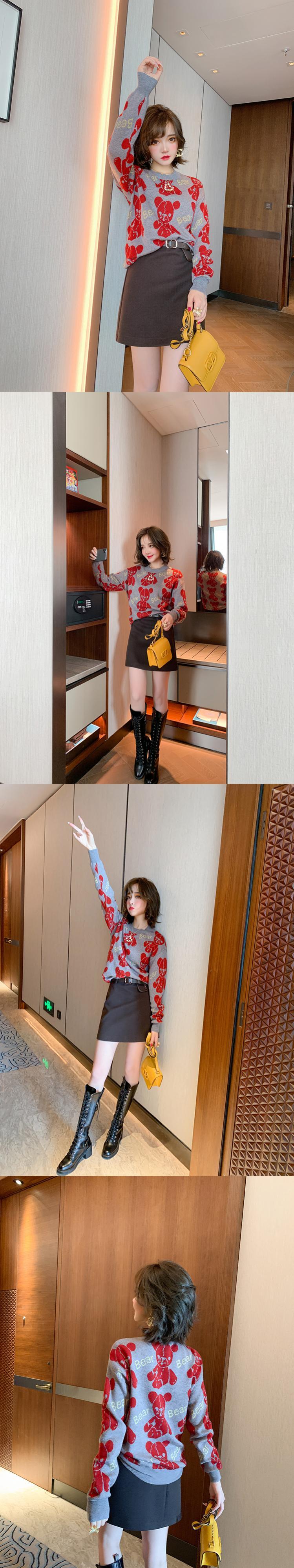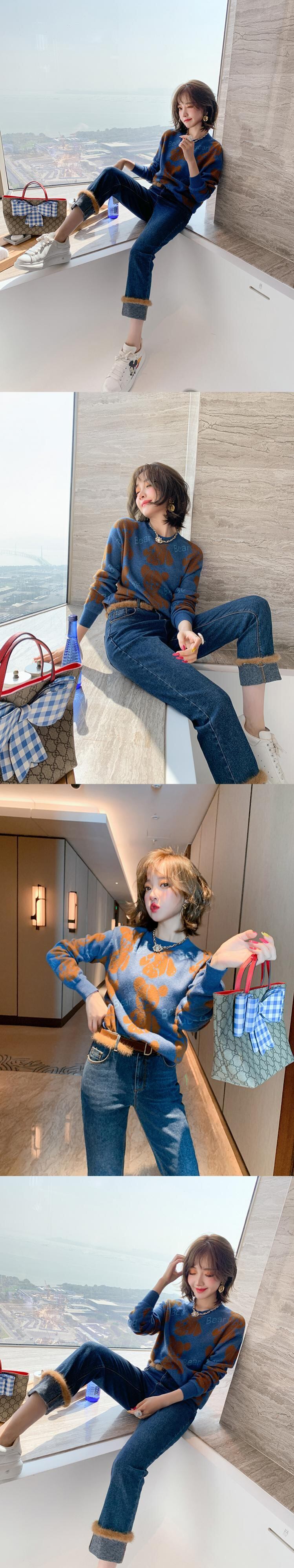 スタイルFlowerデザイン ラウンドネックルーズニットセーター レディースウィンター 冬物 Oネック フラワーデザイン MIUCO53819820441