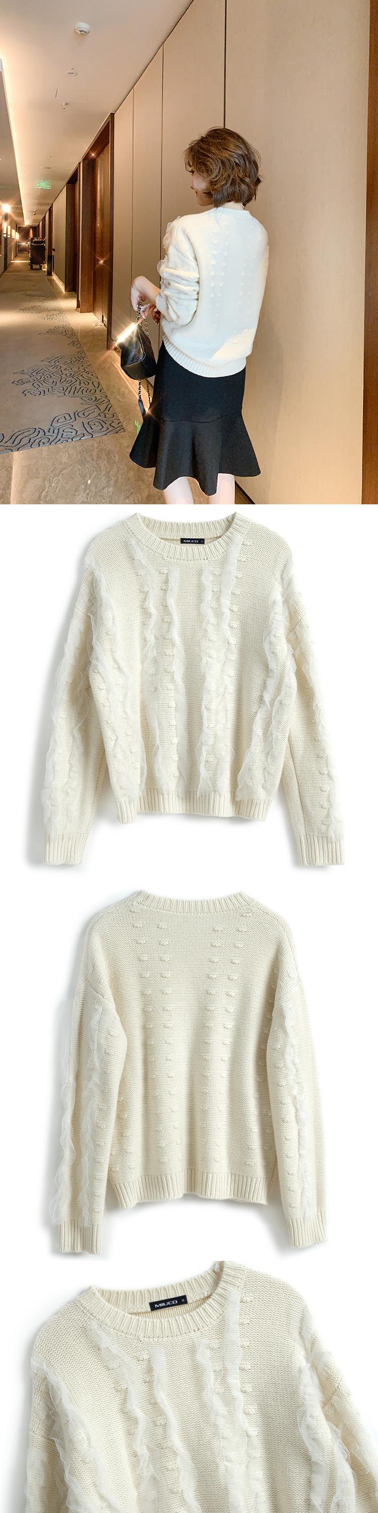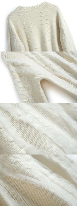 ジャカードストライププリーツメッシュセーター ウィンター 冬物 ステッチ MIUCO12632600552