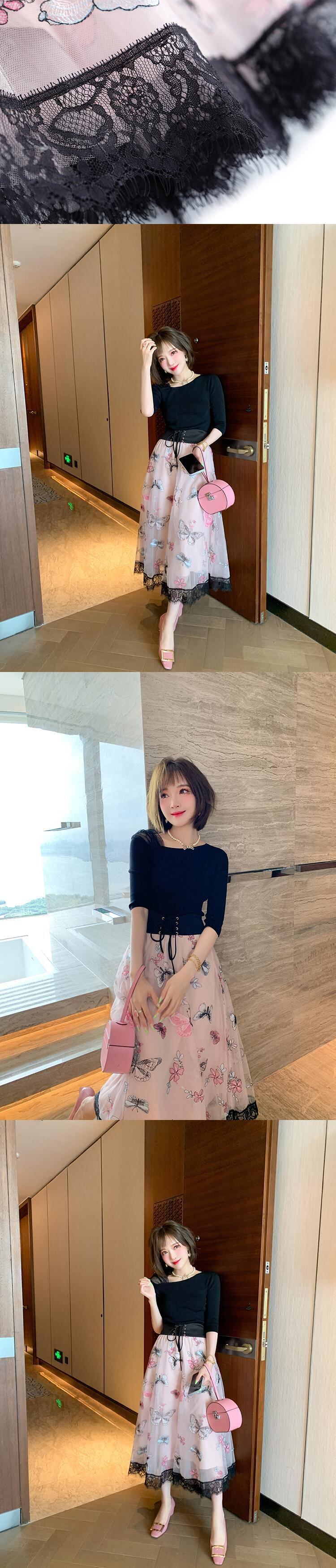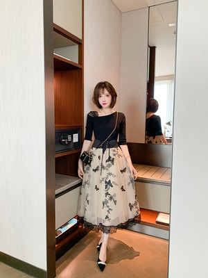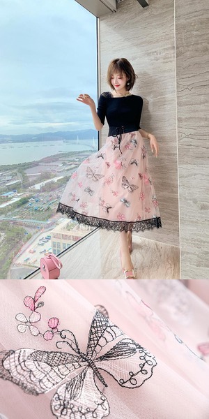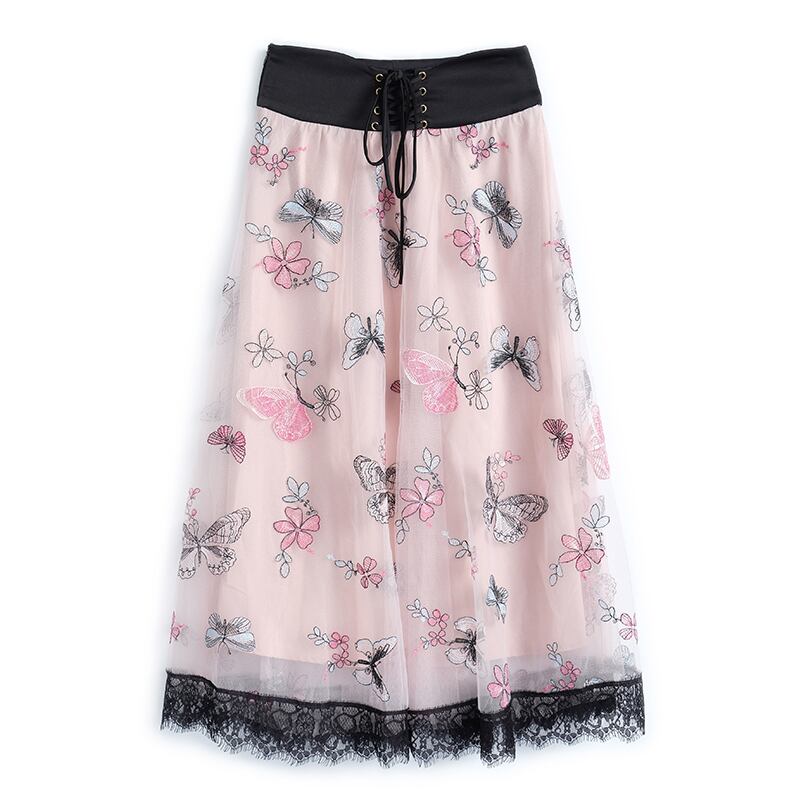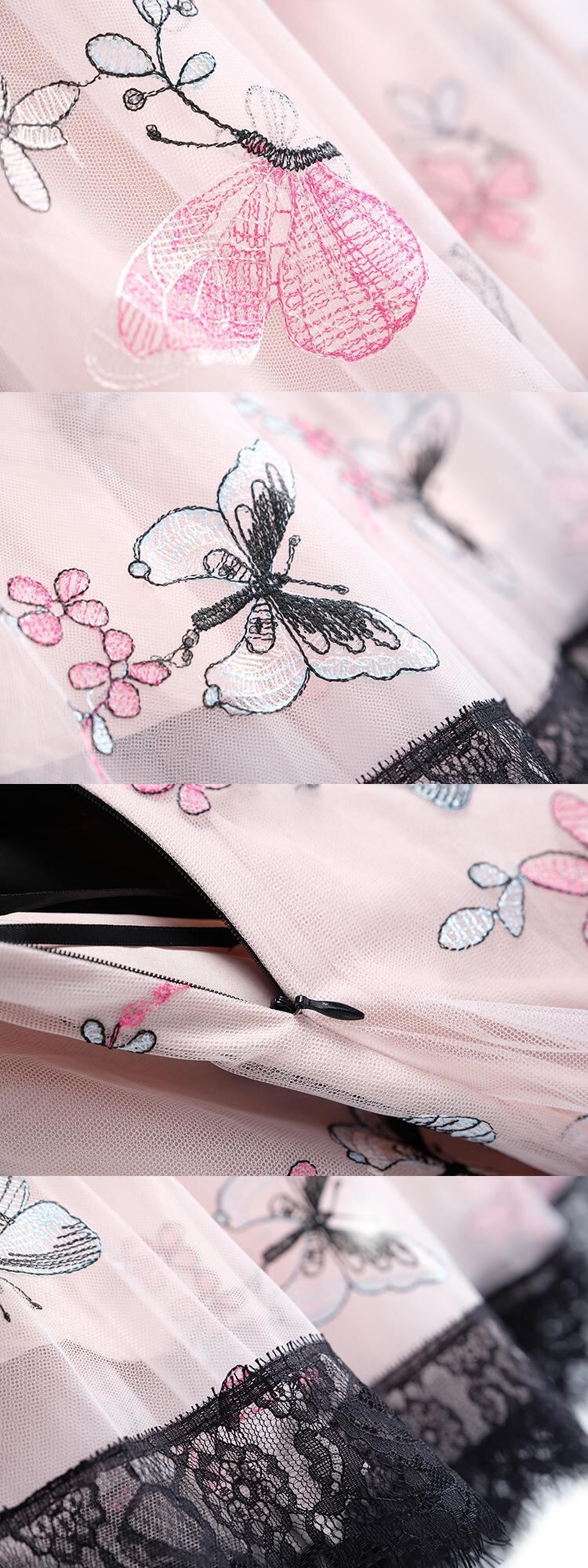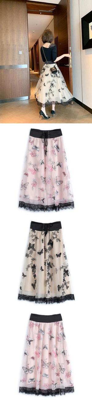 スカート Butterflyデザイン レースバンドウェストメッシュ レッド 刺繍 MIUCO36877920746