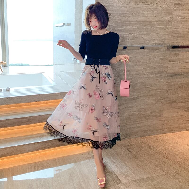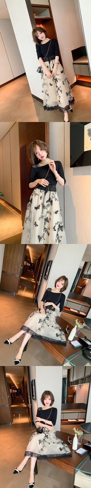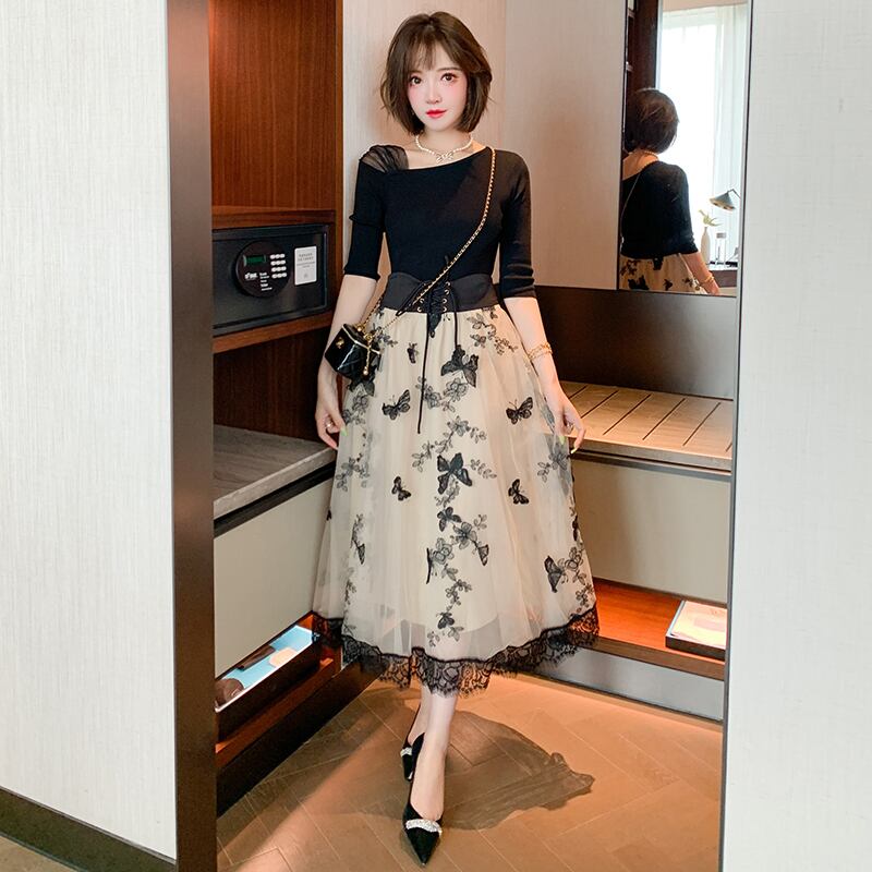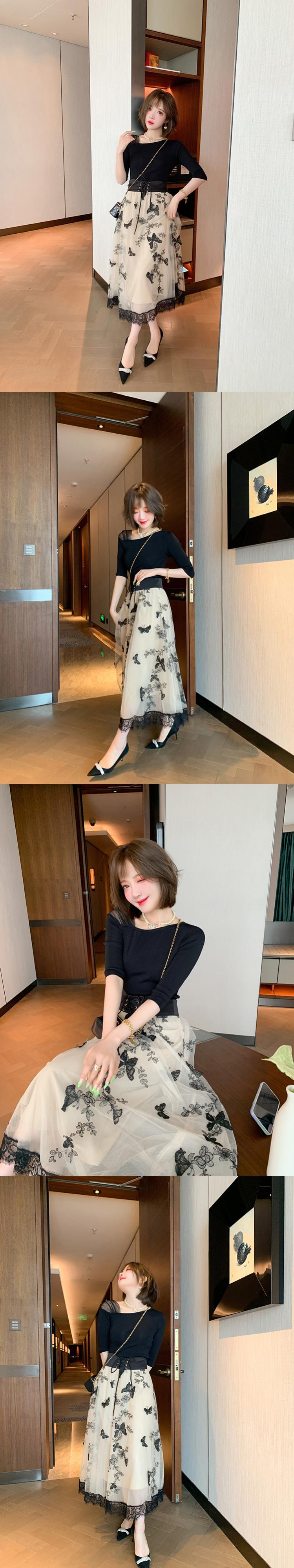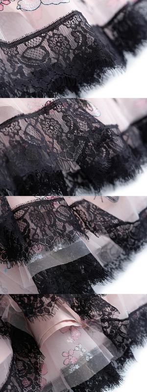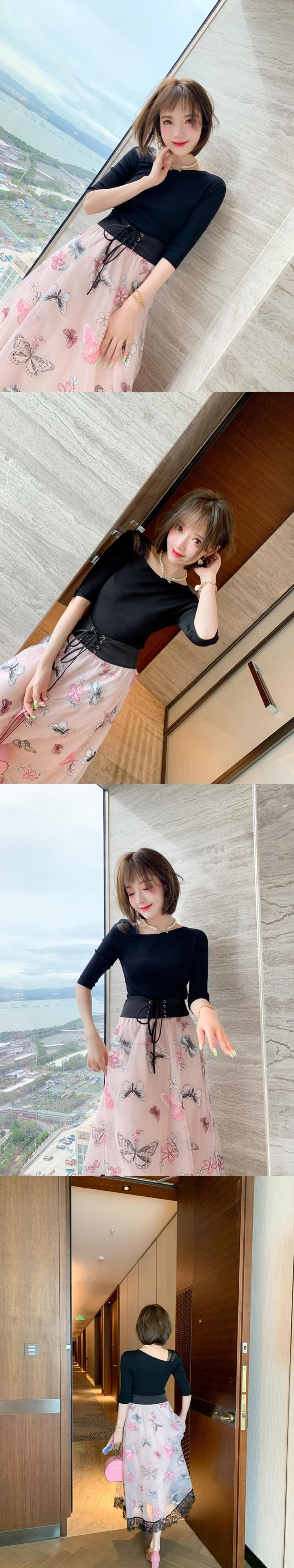 スカート Butterflyデザイン レースバンドウェストメッシュ レッド 刺繍 MIUCO36877920746
