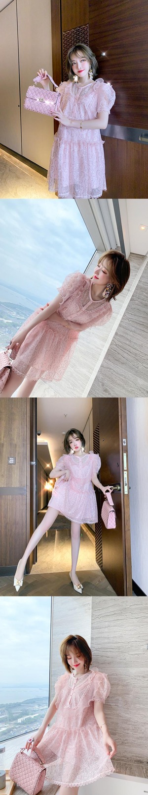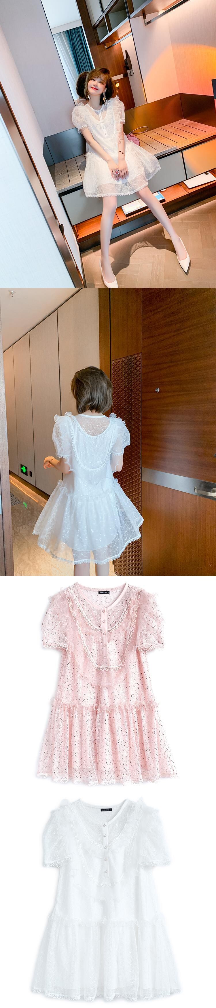 レースドレス 大人ガーリー スウィート キュート カジュアル ステッチ MIUCO33488202190