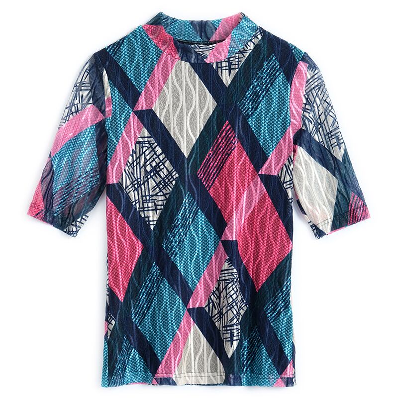 スタンダードモダンストライプカラースリーブプリントTシャツ オータム レトロ 秋物 MIUCO47897086201