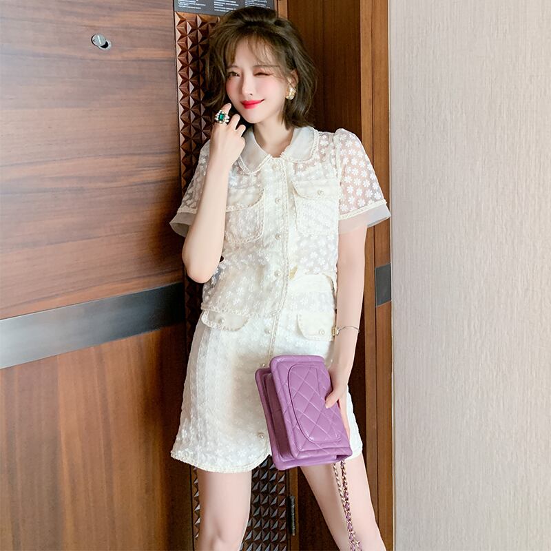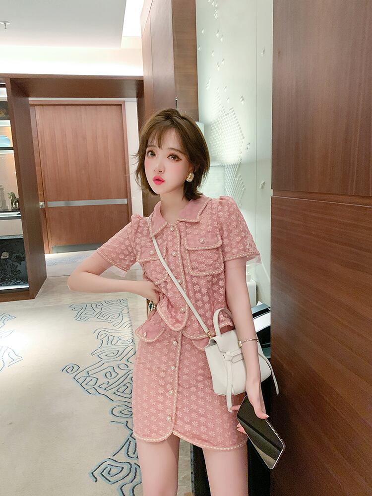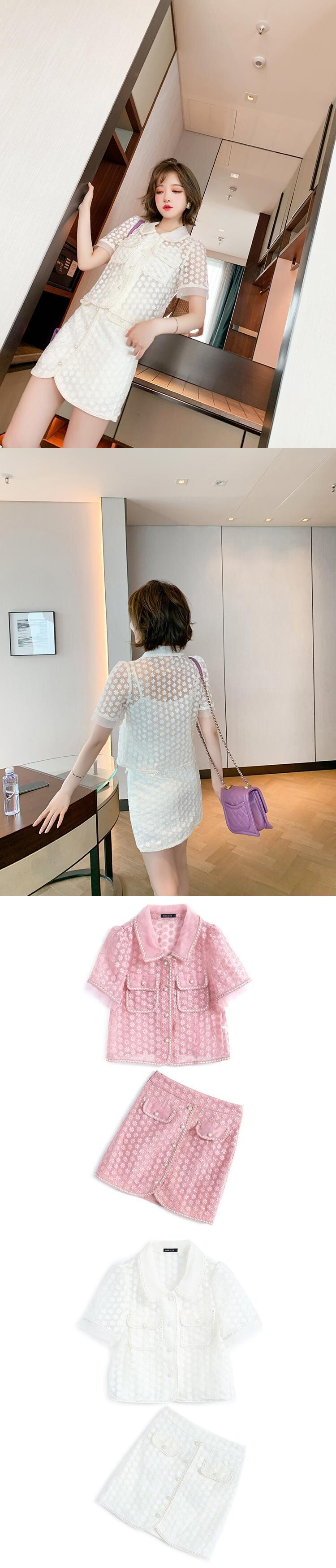 パターントップス ウェスト薄手スカート サマー レッド 刺繍 夏物 MIUCO48267842765