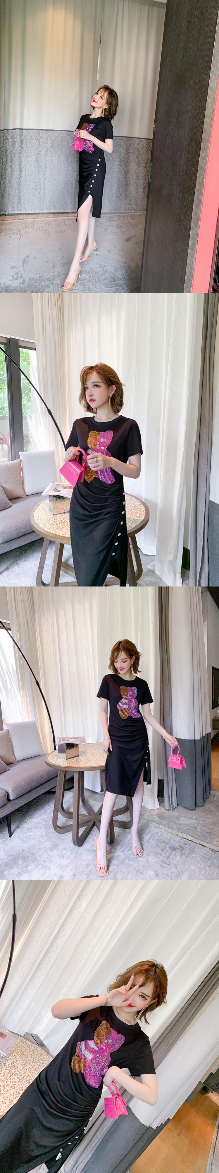 ウェストボタンスリットドレス サマー 夏物 MIUCO38873235742