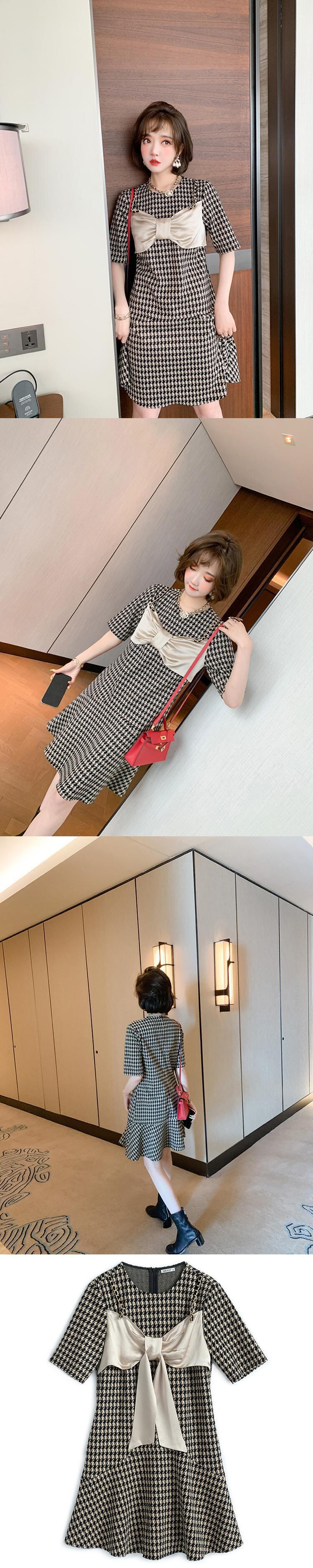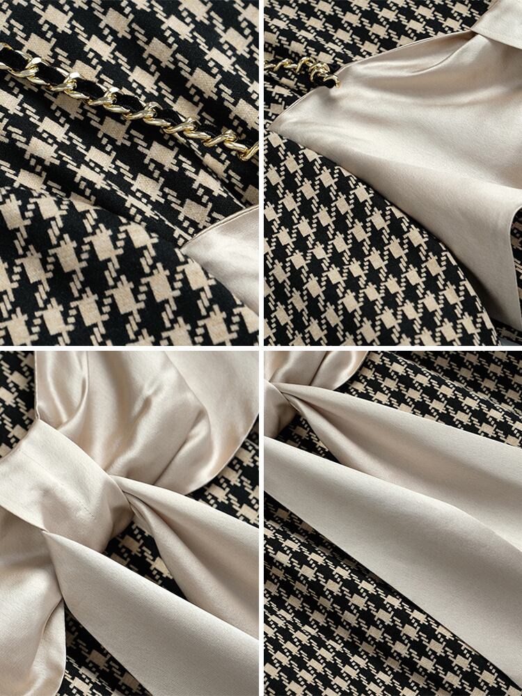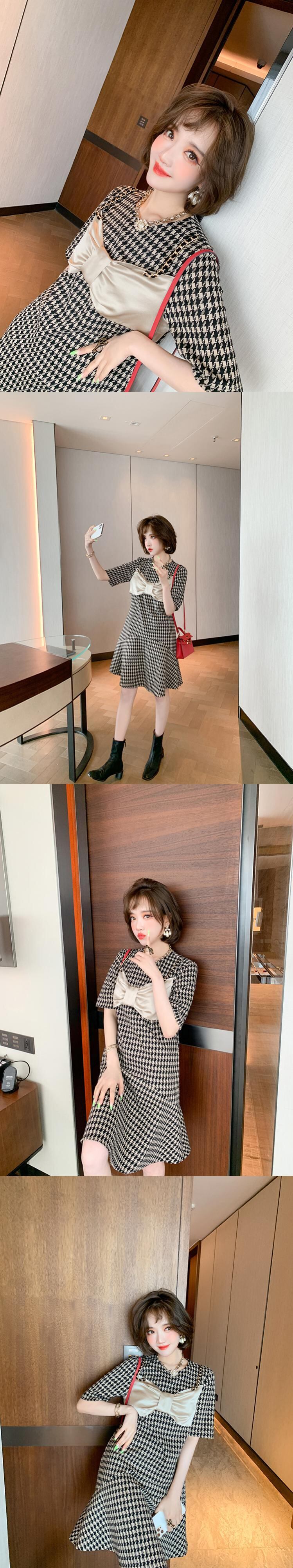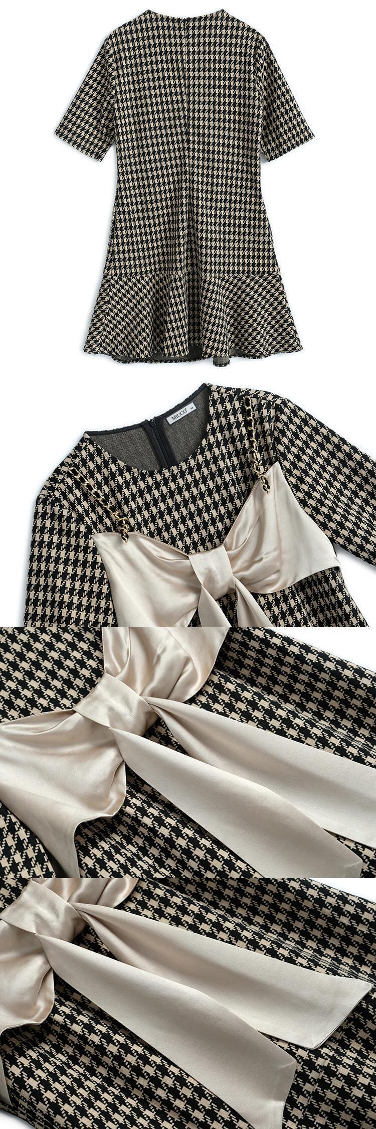チェーン リボンウェストドレス オータム レトロ 秋物 ステッチ MIUCO24491075701
