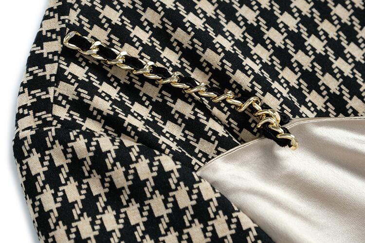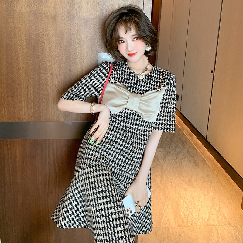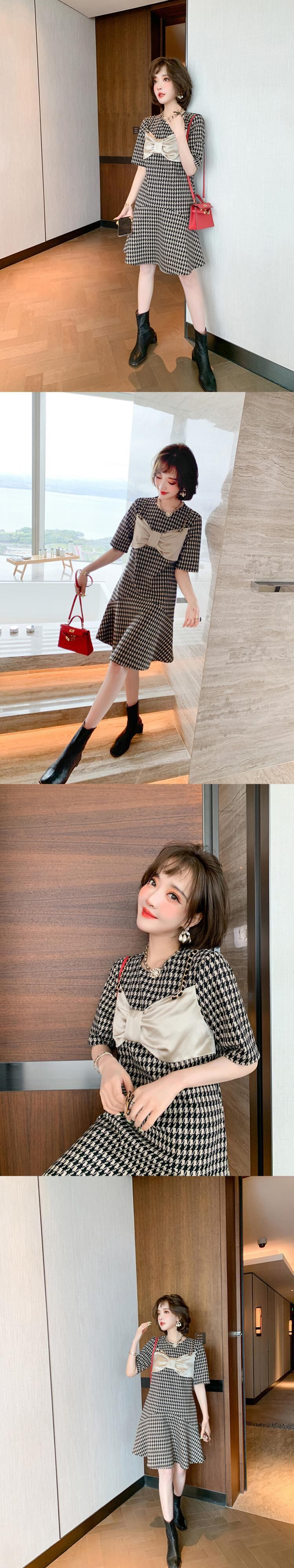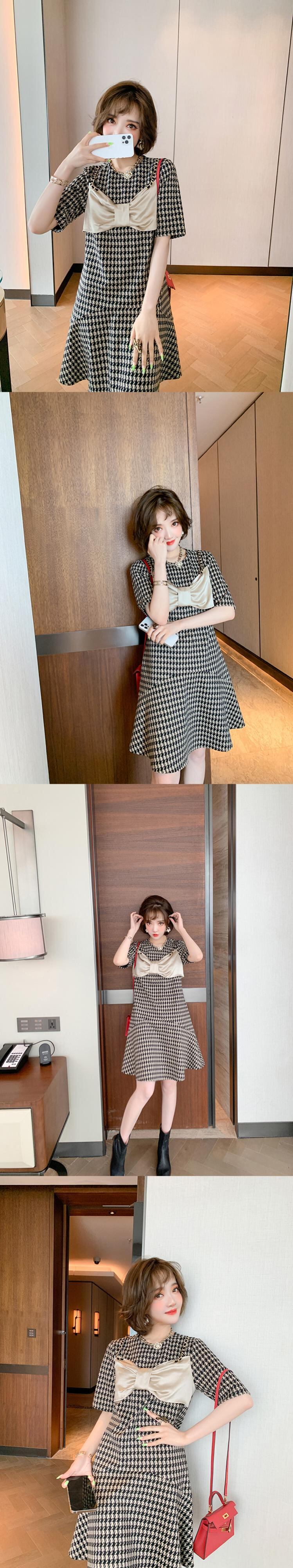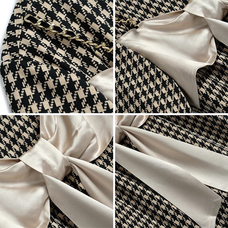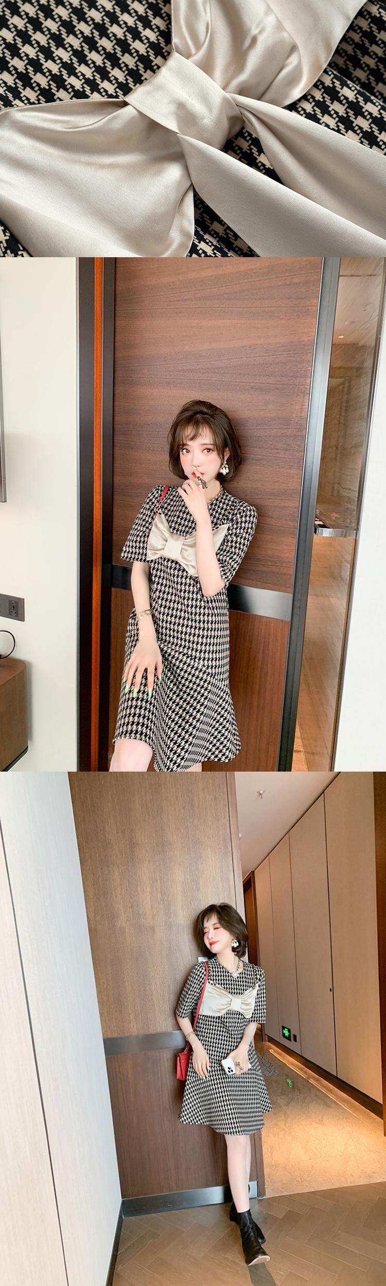 チェーン リボンウェストドレス オータム レトロ 秋物 ステッチ MIUCO24491075701