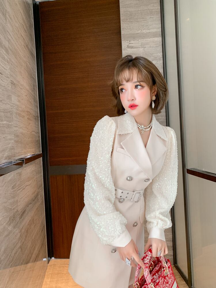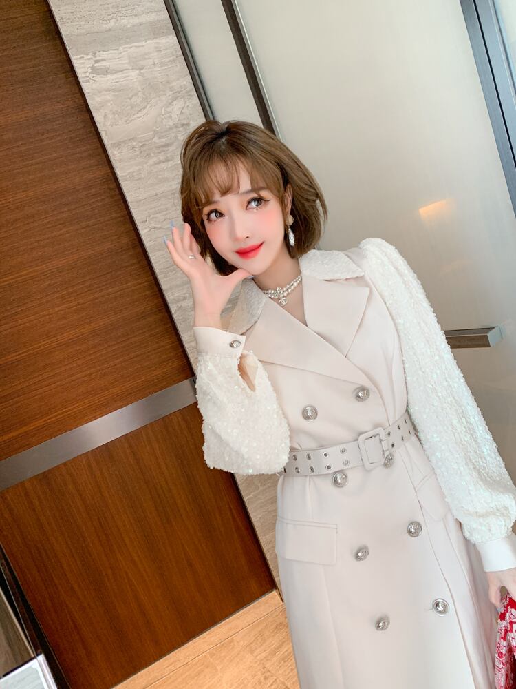 カラーダブルブレストベルト ウェストドレス オータム 秋物 ハーネス MIUCO47554950364