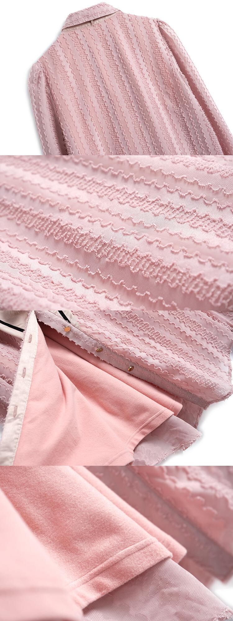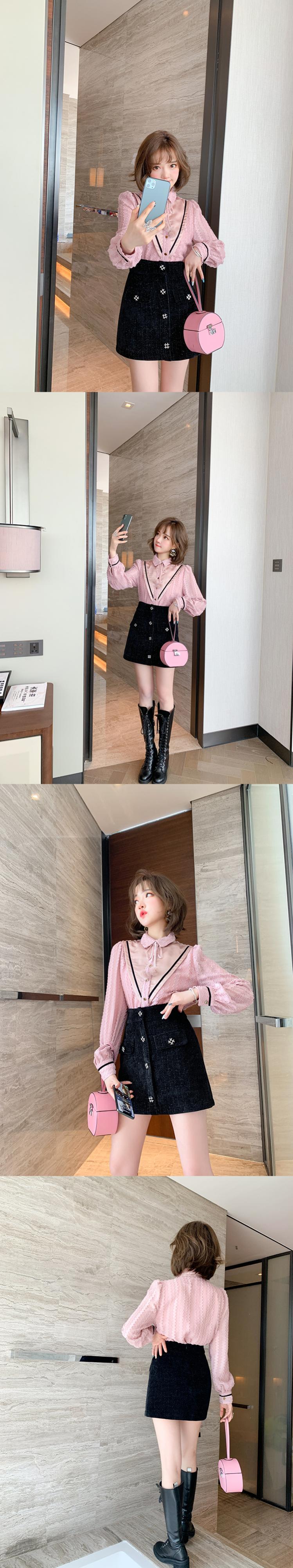 レースジャカードシャツ ボタンツィードAラインスカート オータム 秋物 ステッチ MIUCO14756100573
