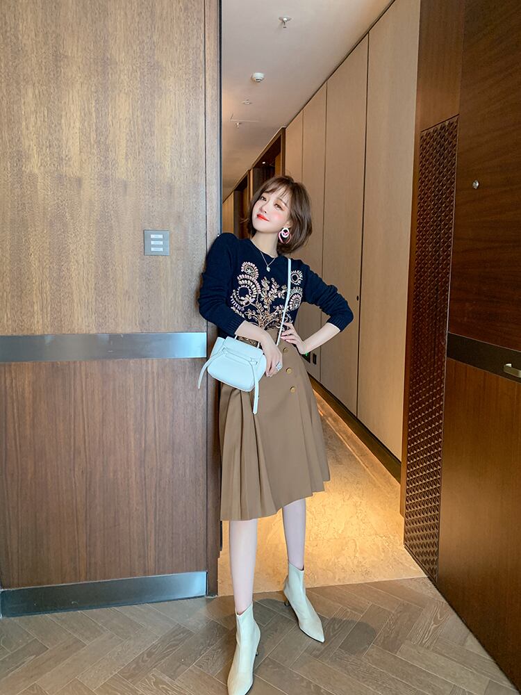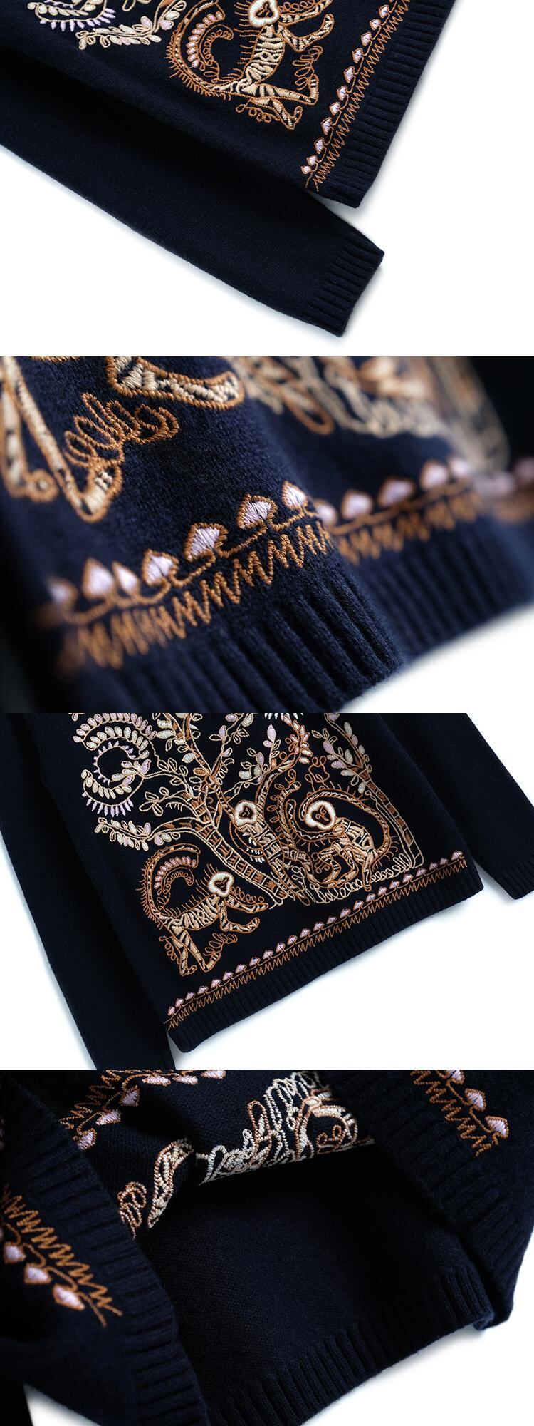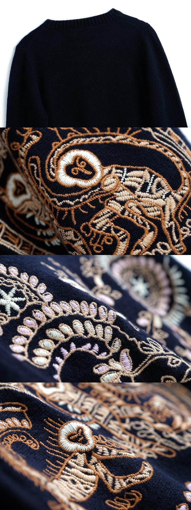 スタンダード刺繍パターンラウンドネックニットセーター オータムウィンター レトロ 秋物 冬物 Oネック MIUCO83909123284