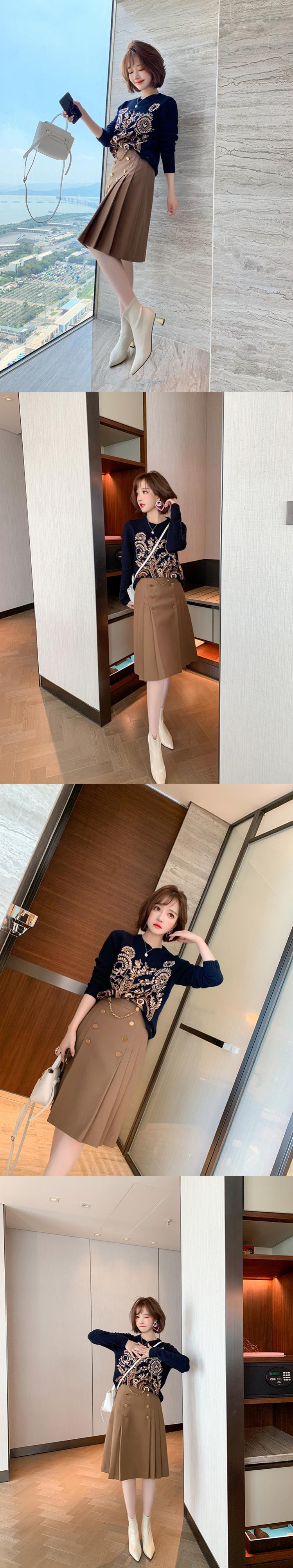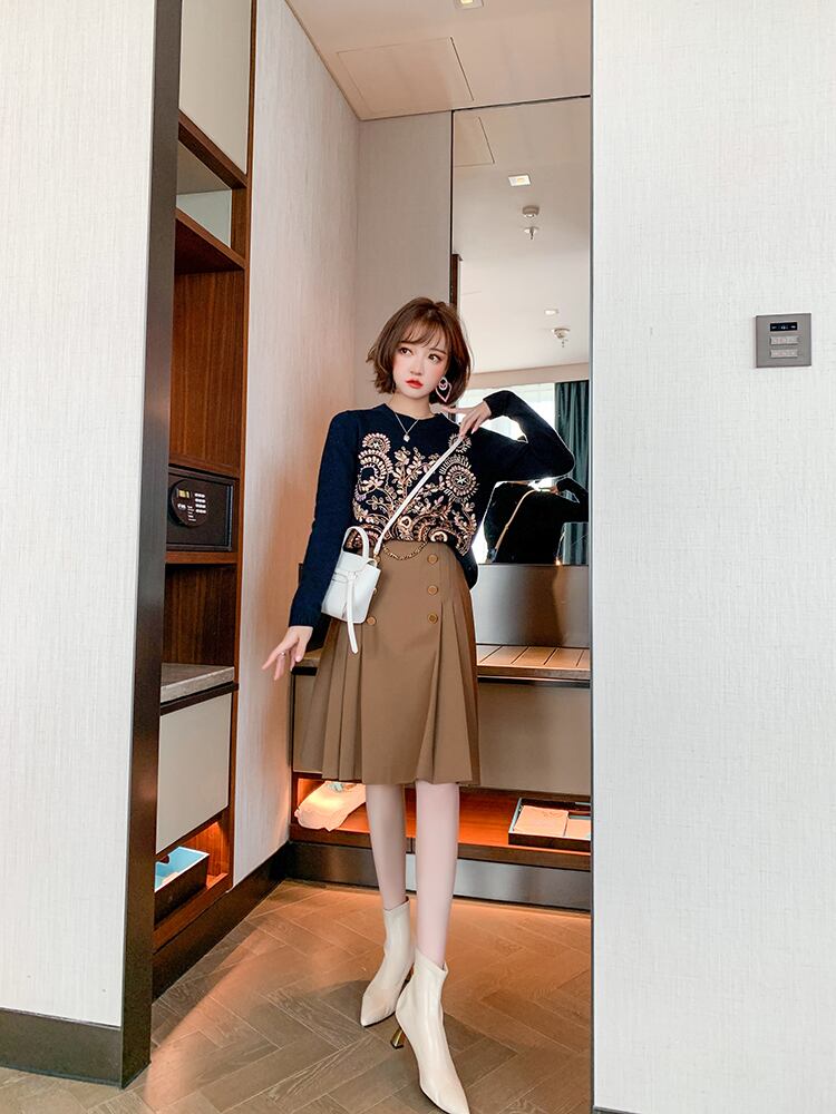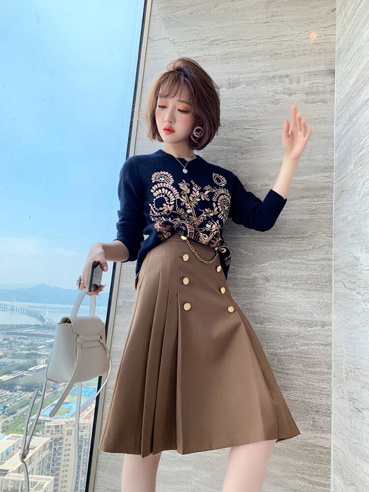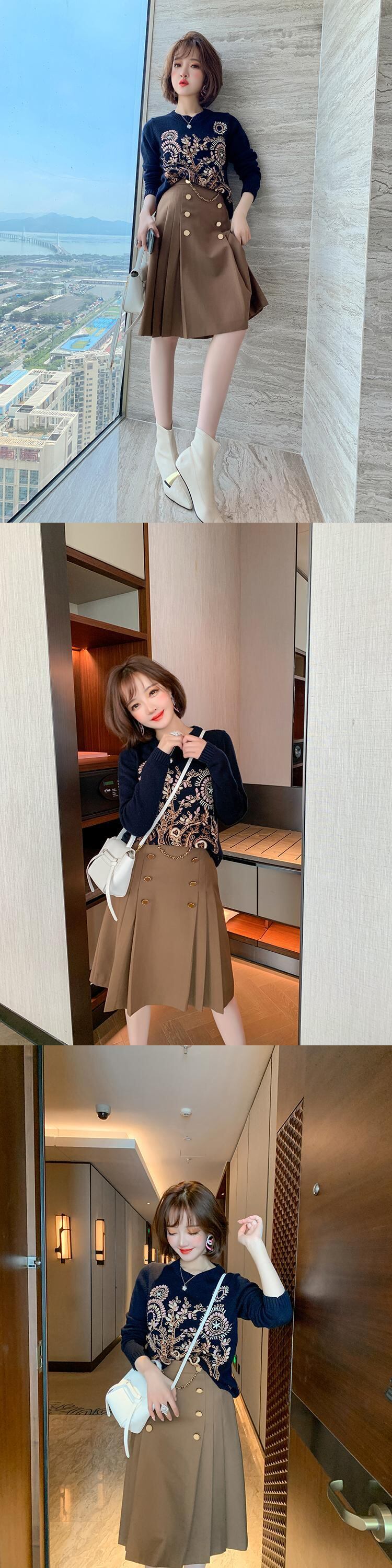 スタンダード刺繍パターンラウンドネックニットセーター オータムウィンター レトロ 秋物 冬物 Oネック MIUCO83909123284