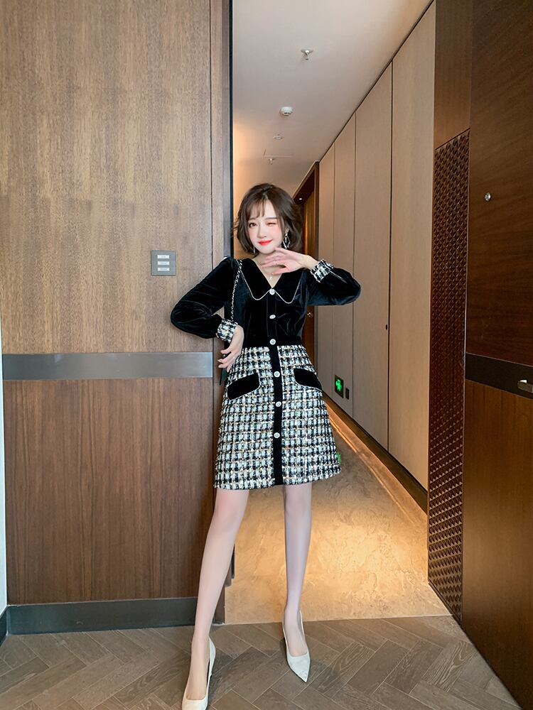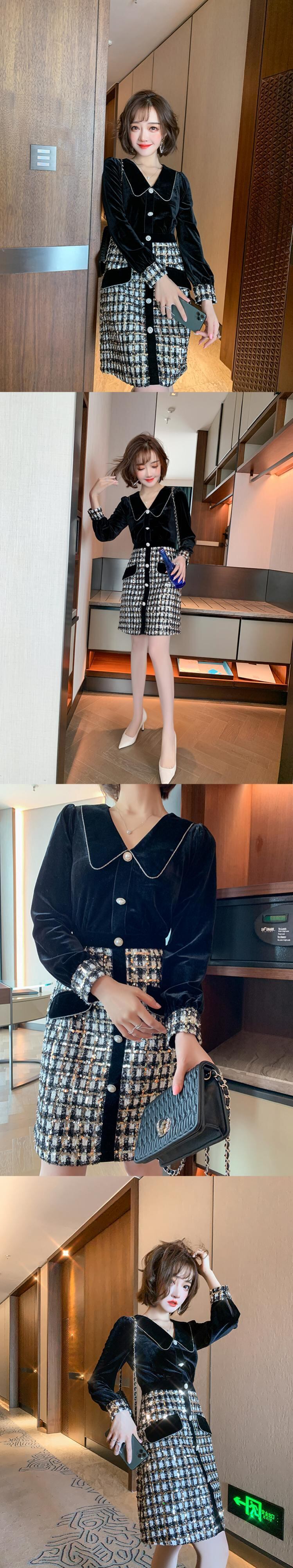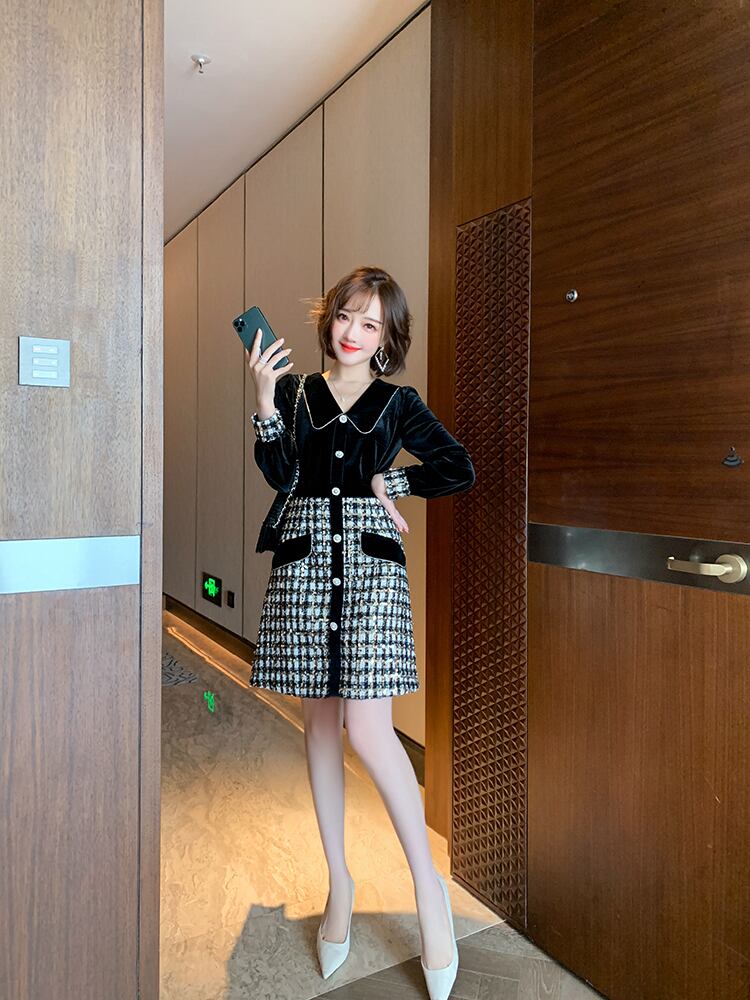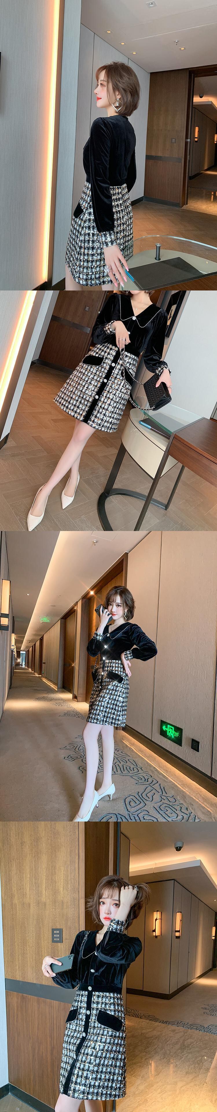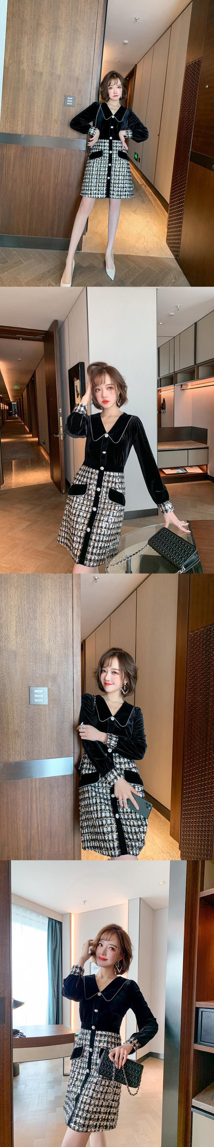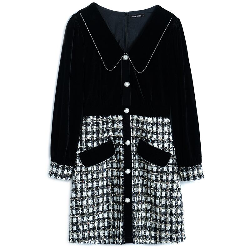 ツィードハイウェストAラインドレス オータムウィンター 秋物 冬物 ステッチ MIUCO89825642766