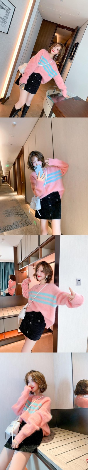 カラーストライプニット セーター ウィンター 冬物 MIUCO48797800964