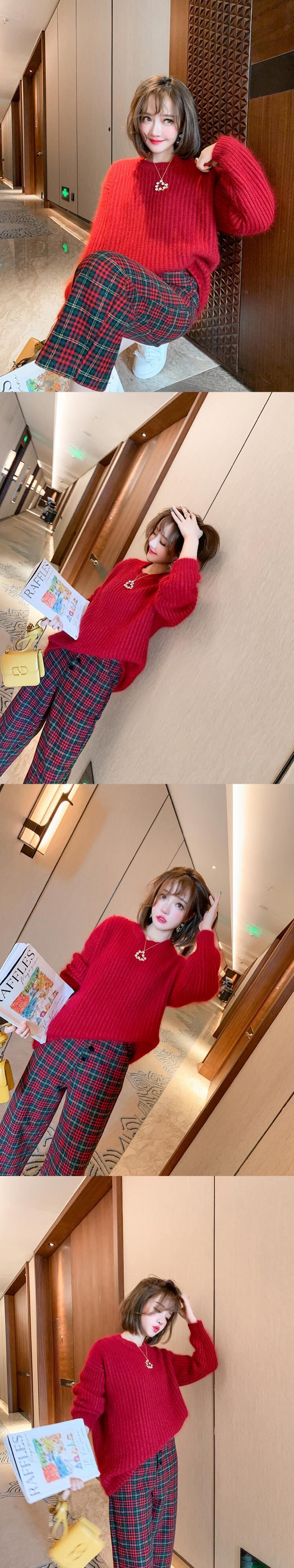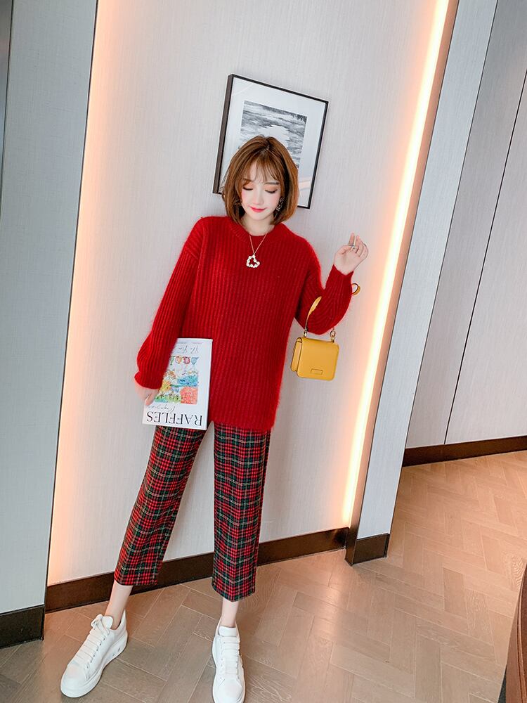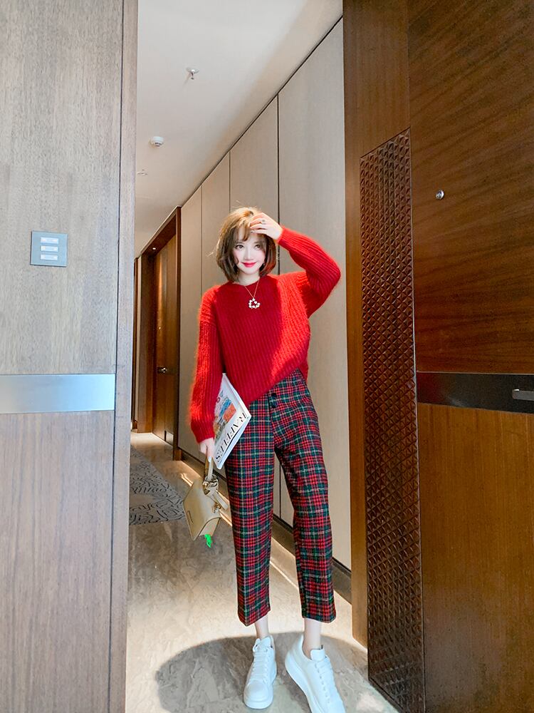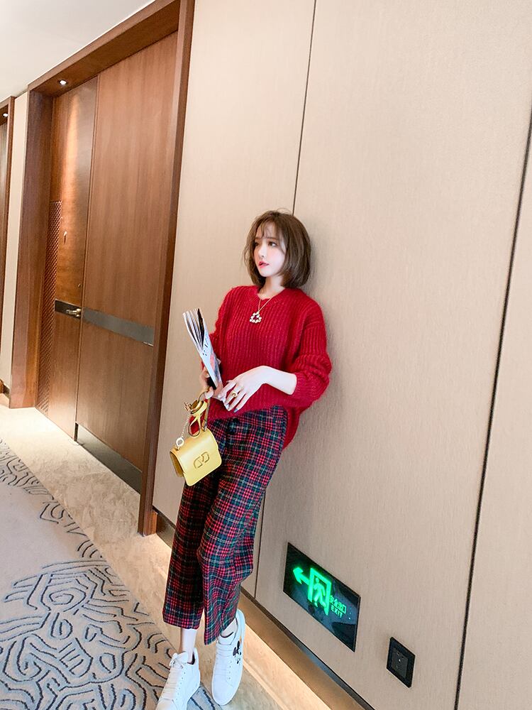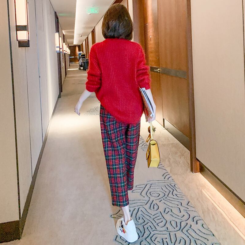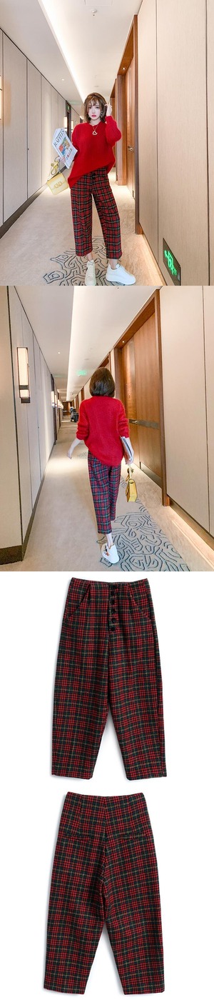 ハイウェストクロップド薄手スタンダードルーズ格子柄パンツ ウィンター レトロ 冬物 MIUCO67932507441