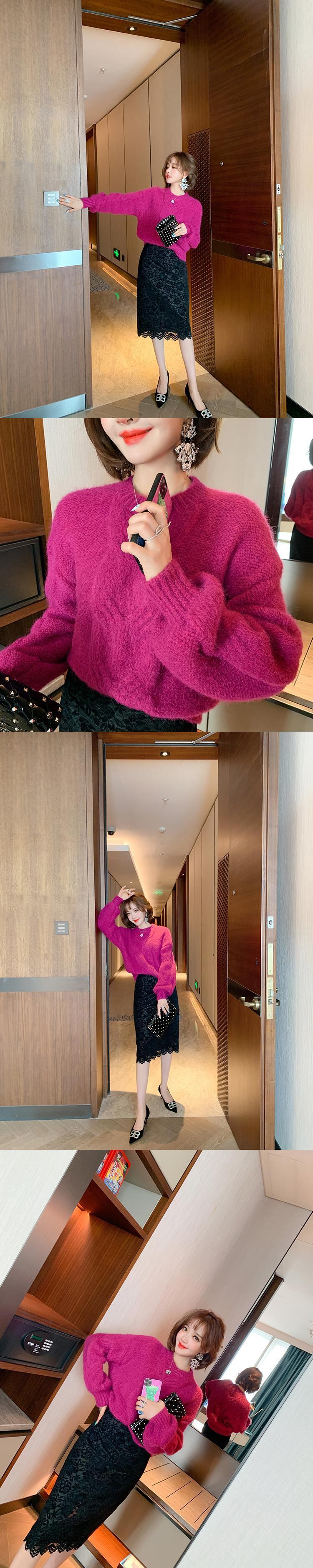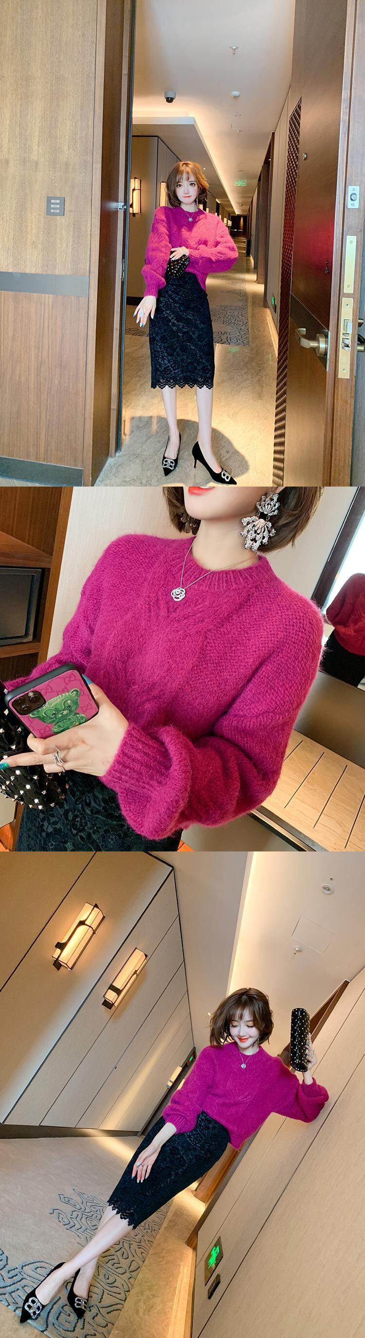 ジャカードルーズラウンドネックニットセーター レディースウィンター 冬物 Oネック MIUCO58768848047