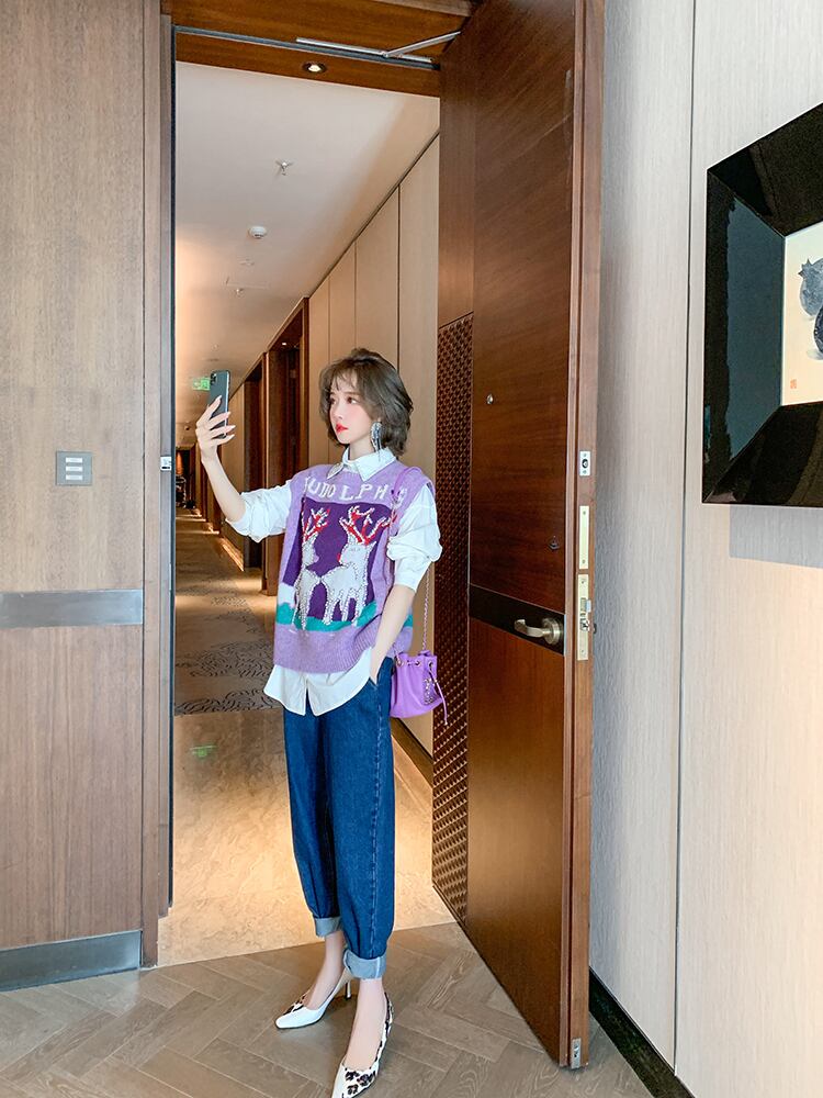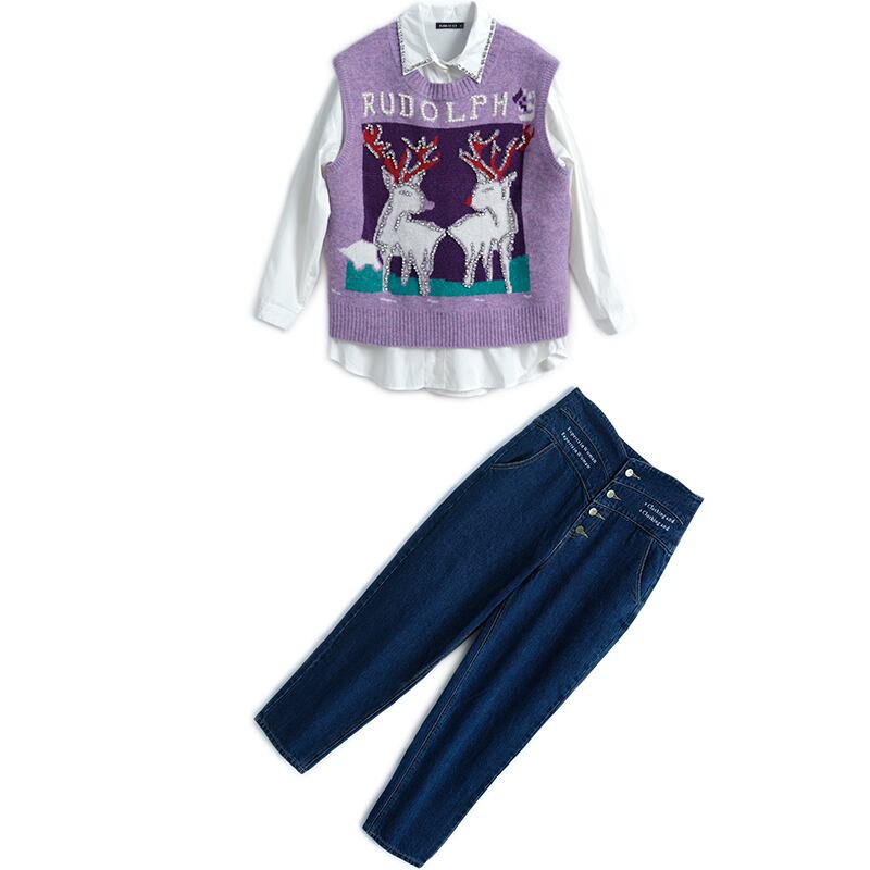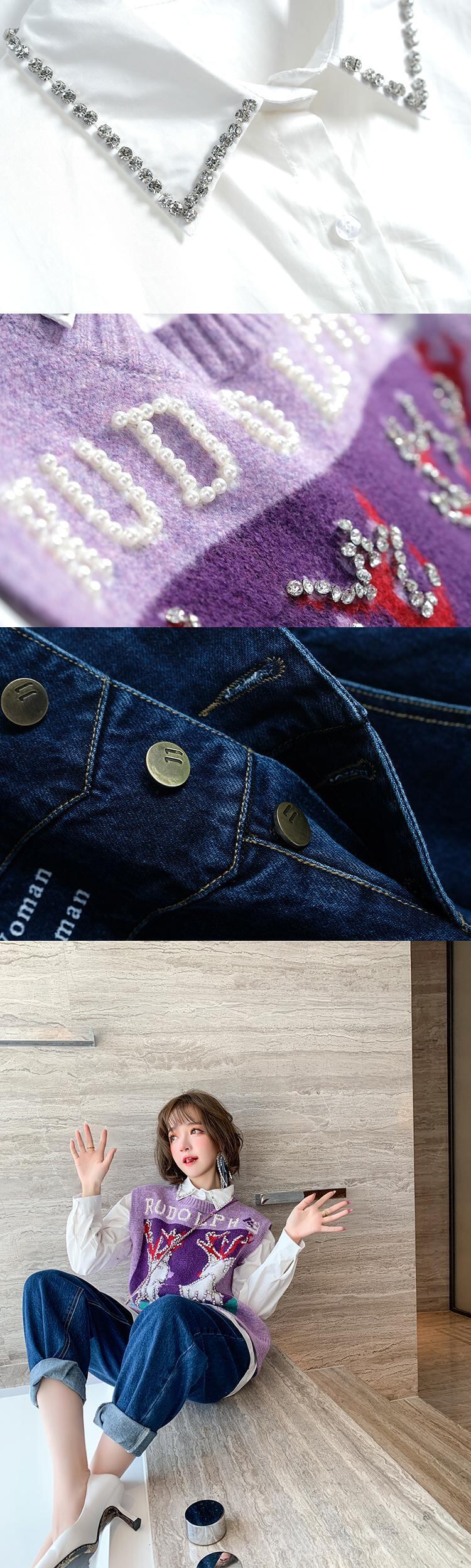 シャツ ニットハイウェストウェストブレストジーンズ オータムウィンター 秋物 冬物 MIUCO29347693206
