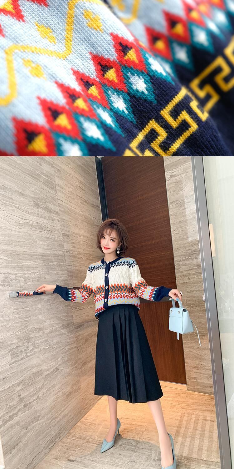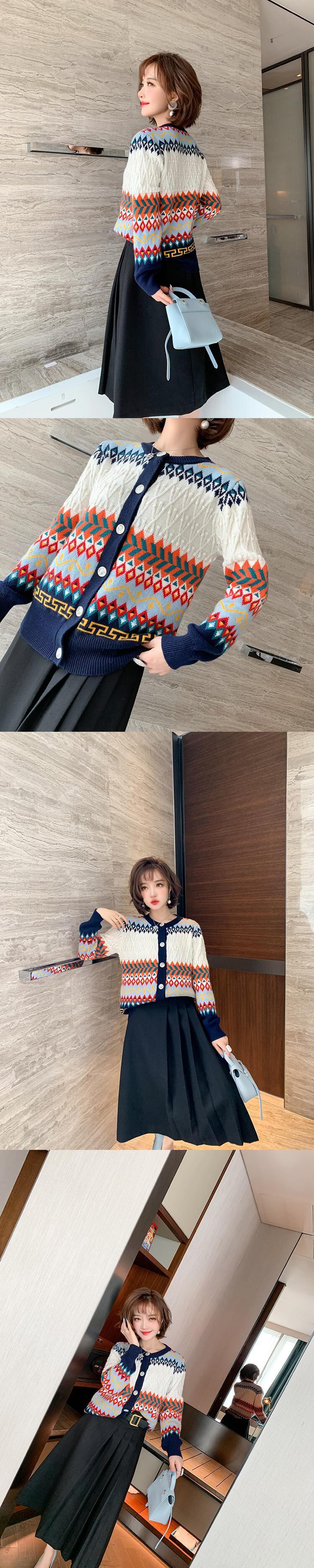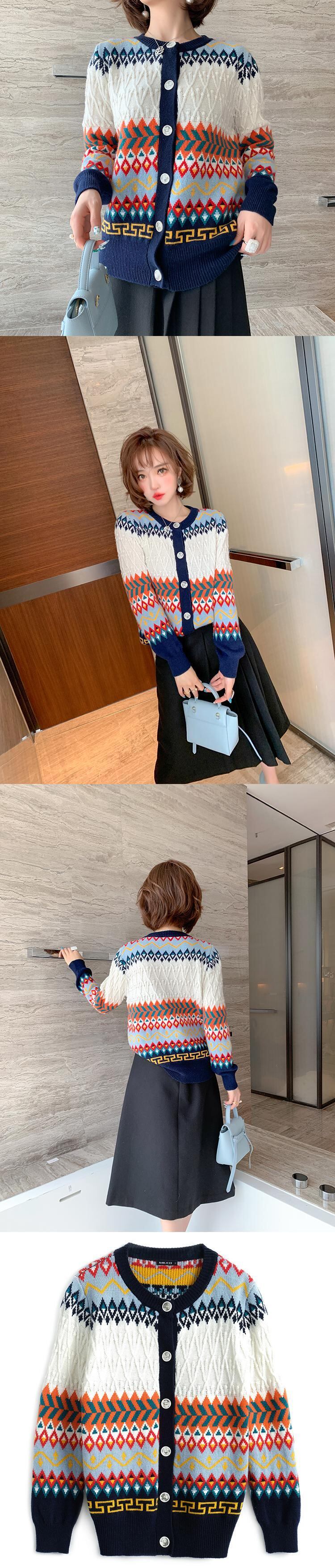 カラージャカードニットカーディガンオータムウィンター 秋物 冬物 MIUCO77124232695