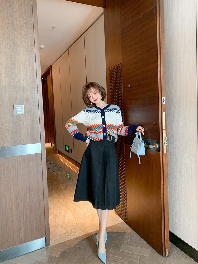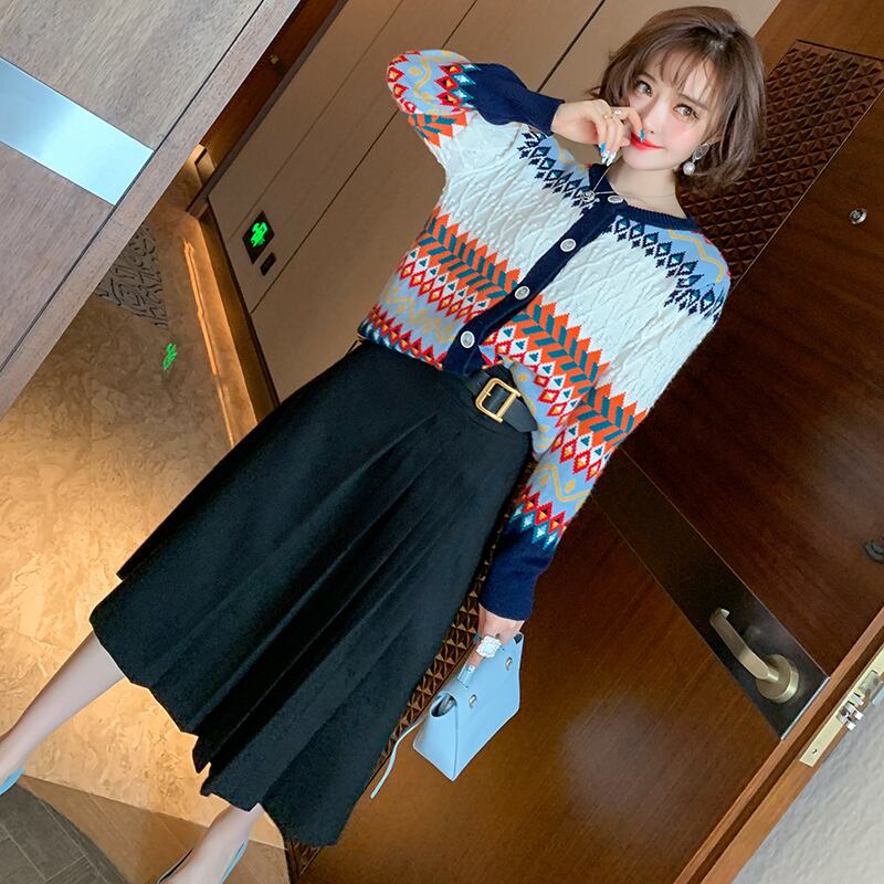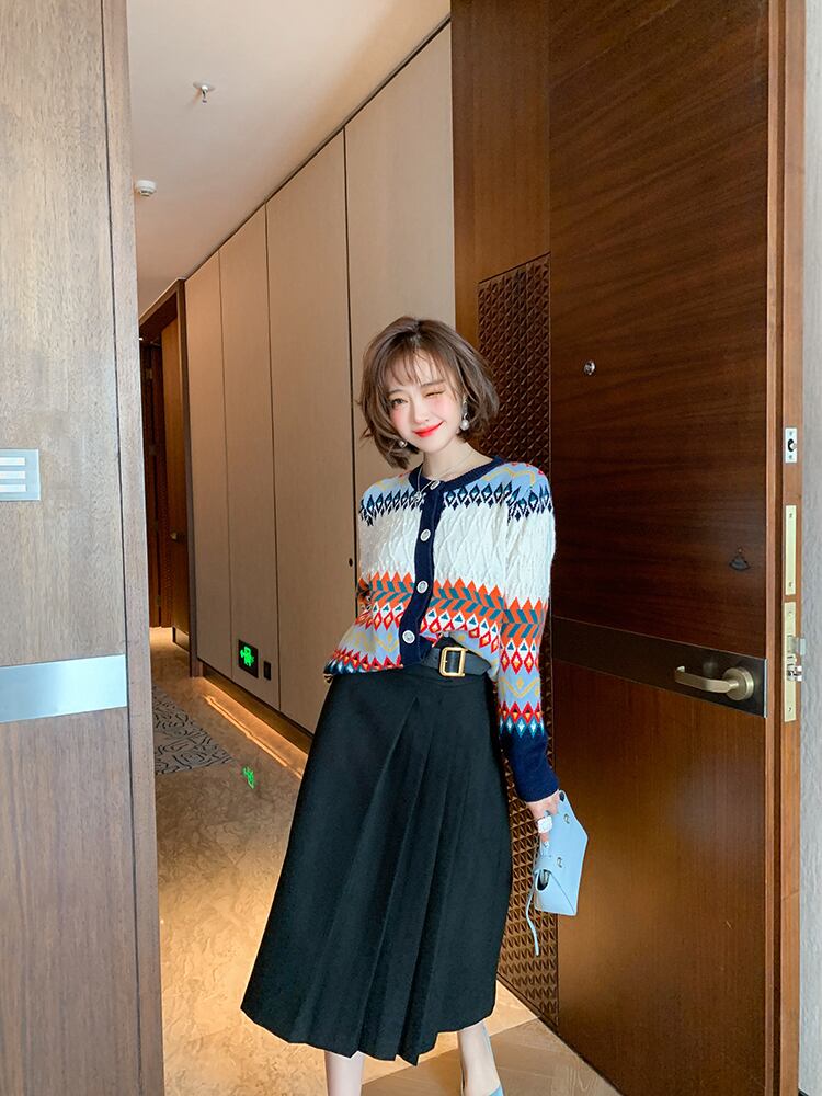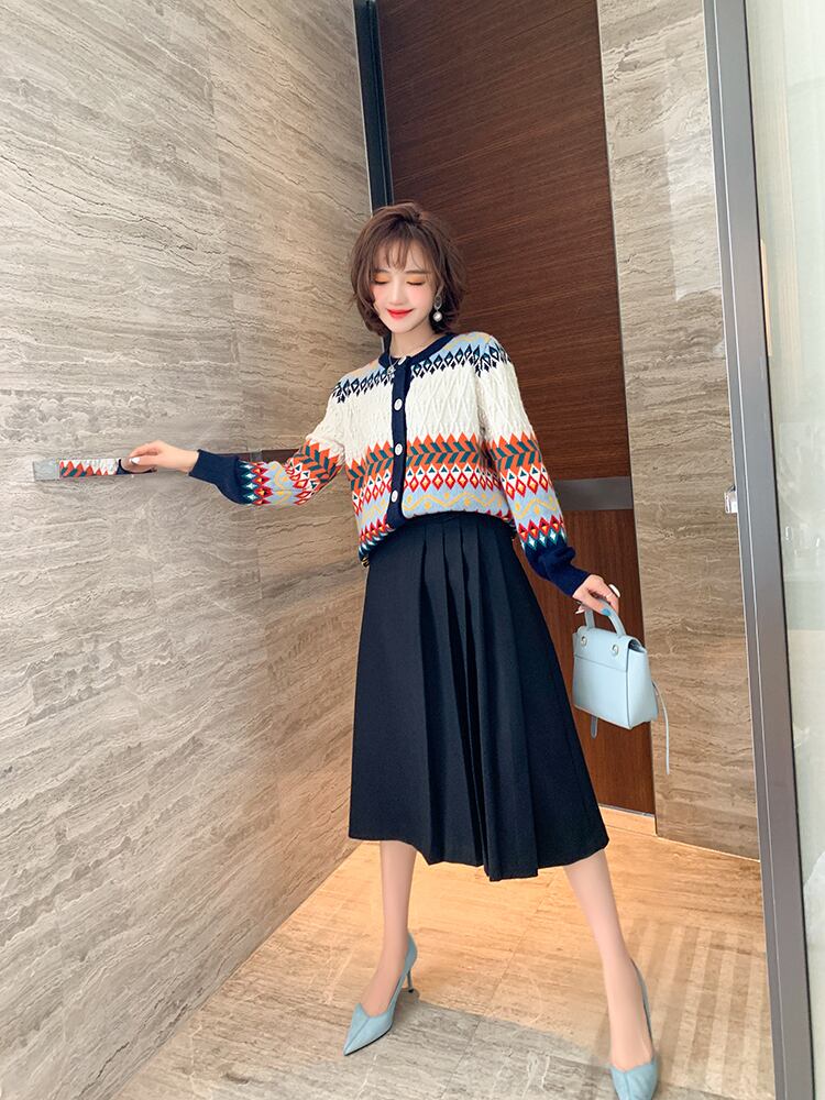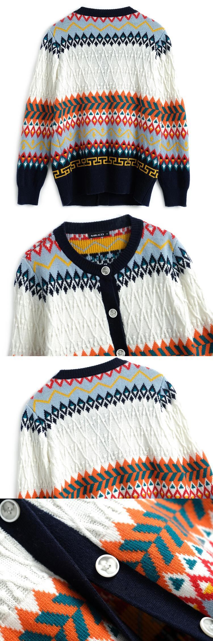 カラージャカードニットカーディガンオータムウィンター 秋物 冬物 MIUCO77124232695