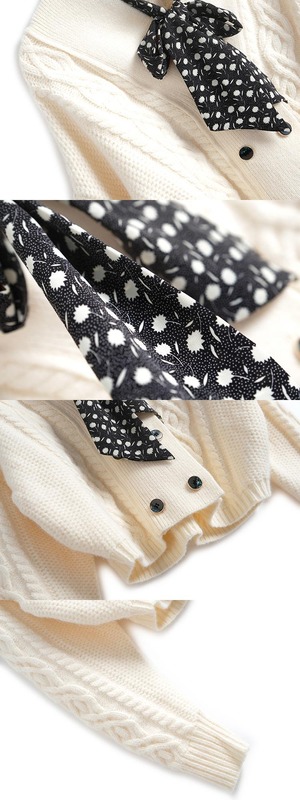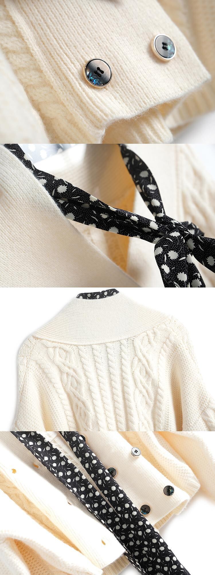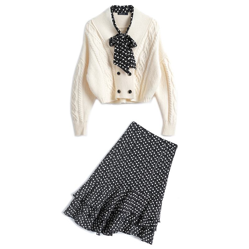 Vネックダブルブレストルーズニットセーター ハイウェストウェストプリントスカート オータム 秋物 MIUCO42523934003
