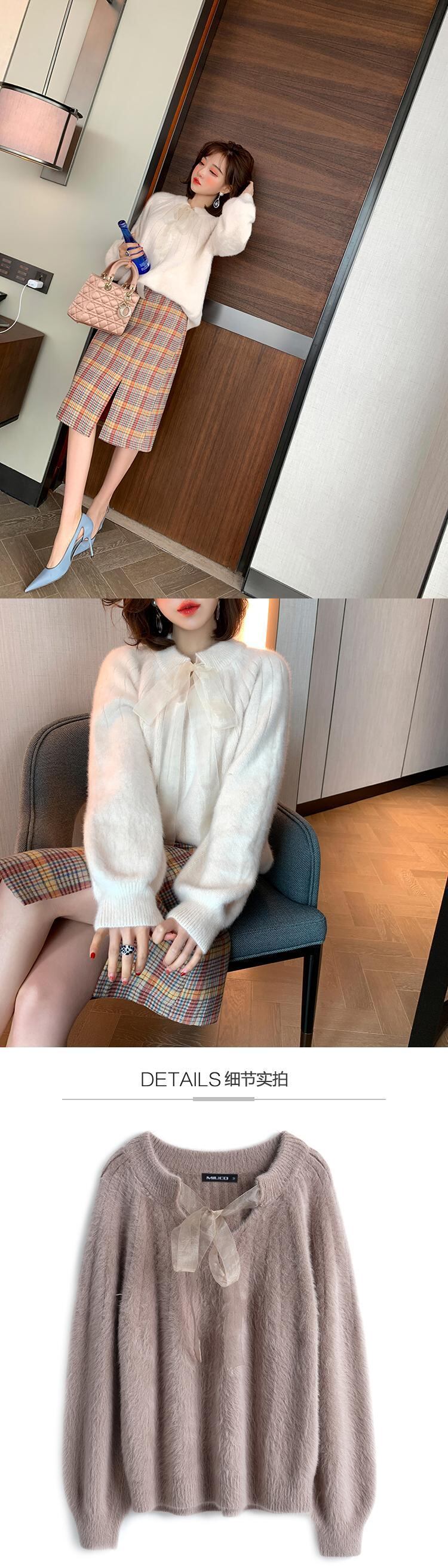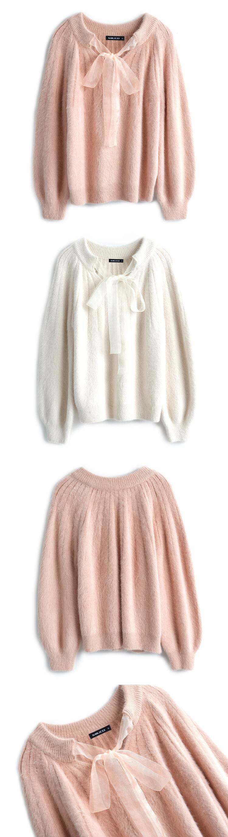 Vネックニットストライプセーター スプリング リボン 春物 MIUCO54020360311