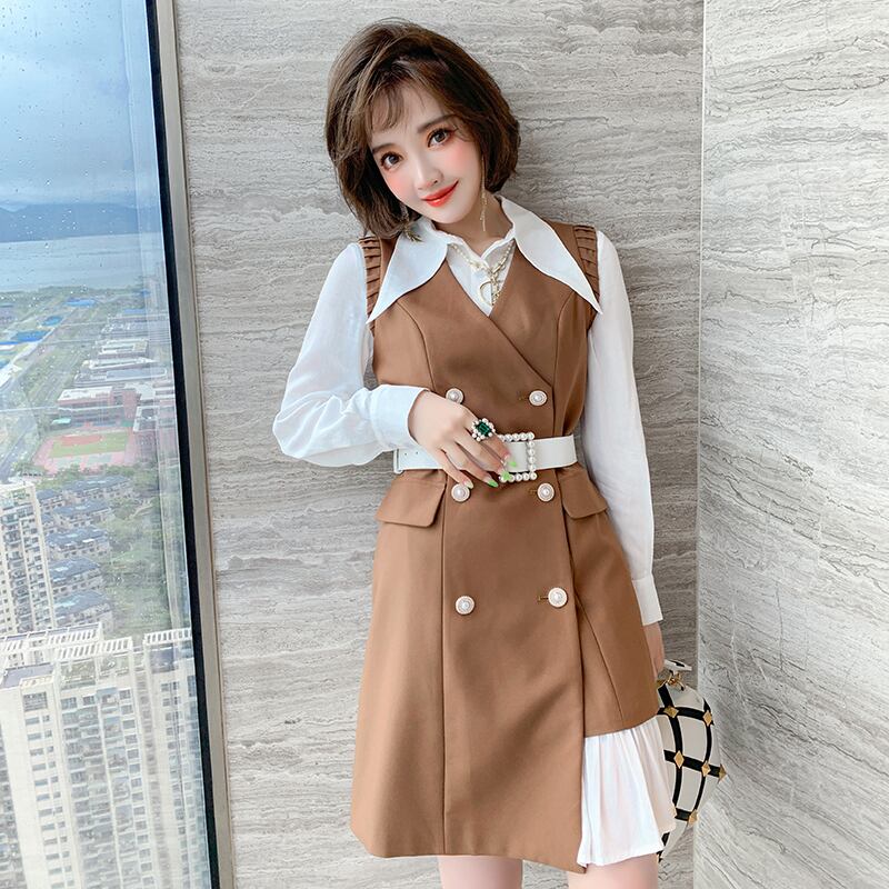 カラーシャツ ドレス ウェストスカート オータム 秋物 MIUCO52642120162
