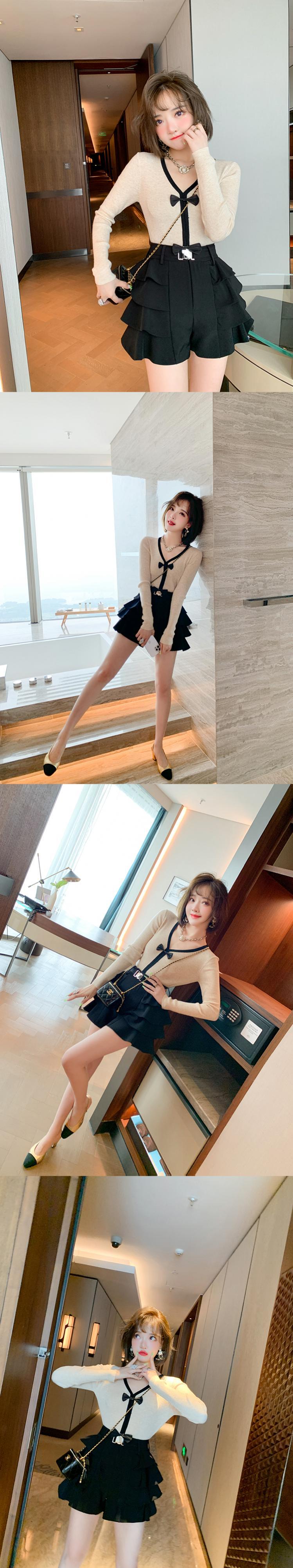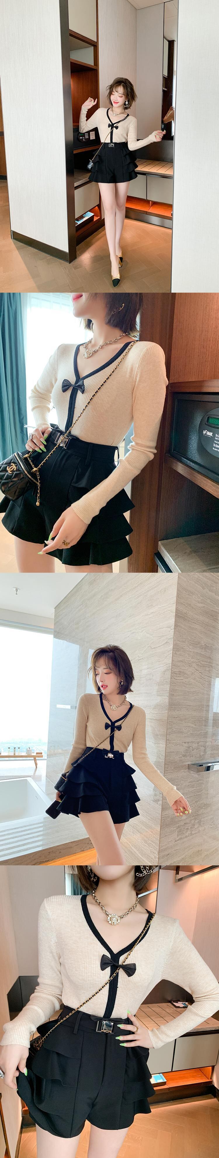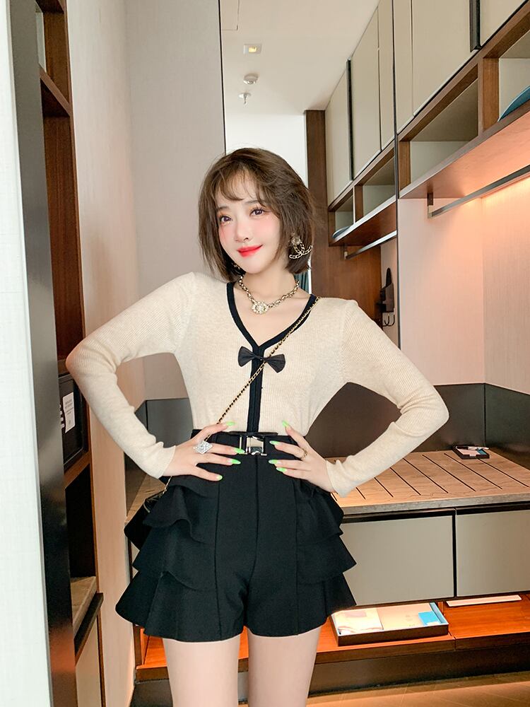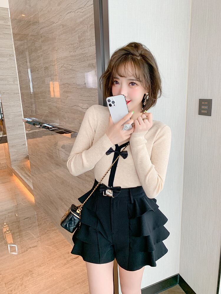 ショートニットセーター ショーツ オータム リボン 大人ガーリー スウィート キュート カジュアル 秋物 ブルマー MIUCO67441982154