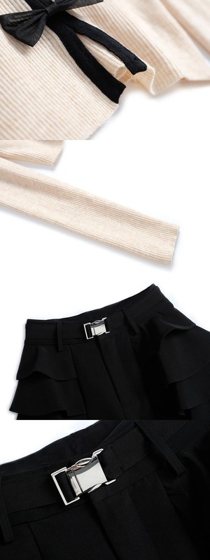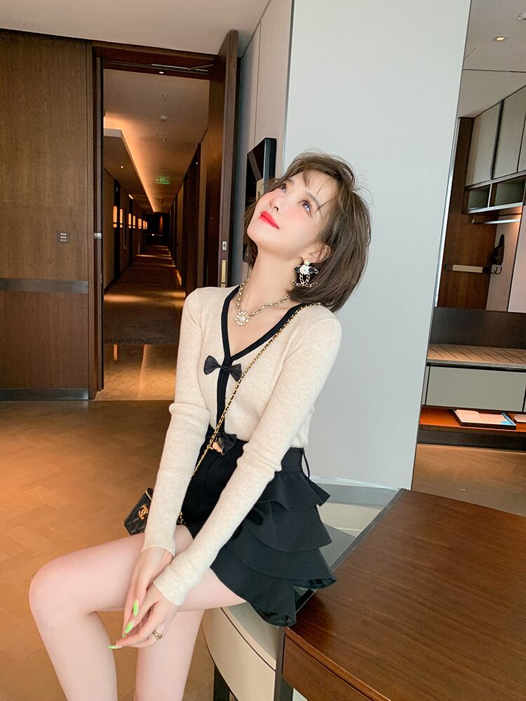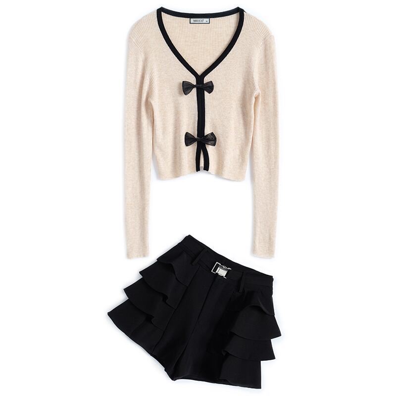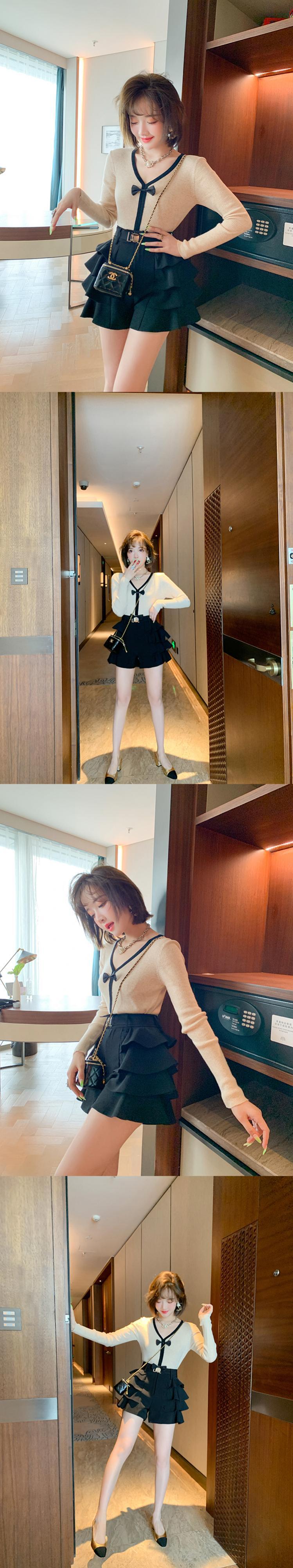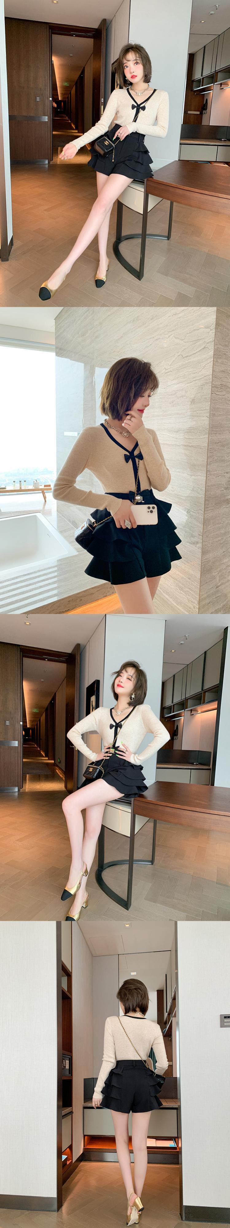 ショートニットセーター ショーツ オータム リボン 大人ガーリー スウィート キュート カジュアル 秋物 ブルマー MIUCO67441982154