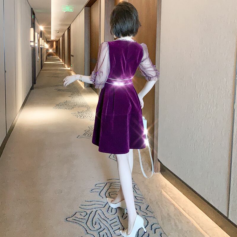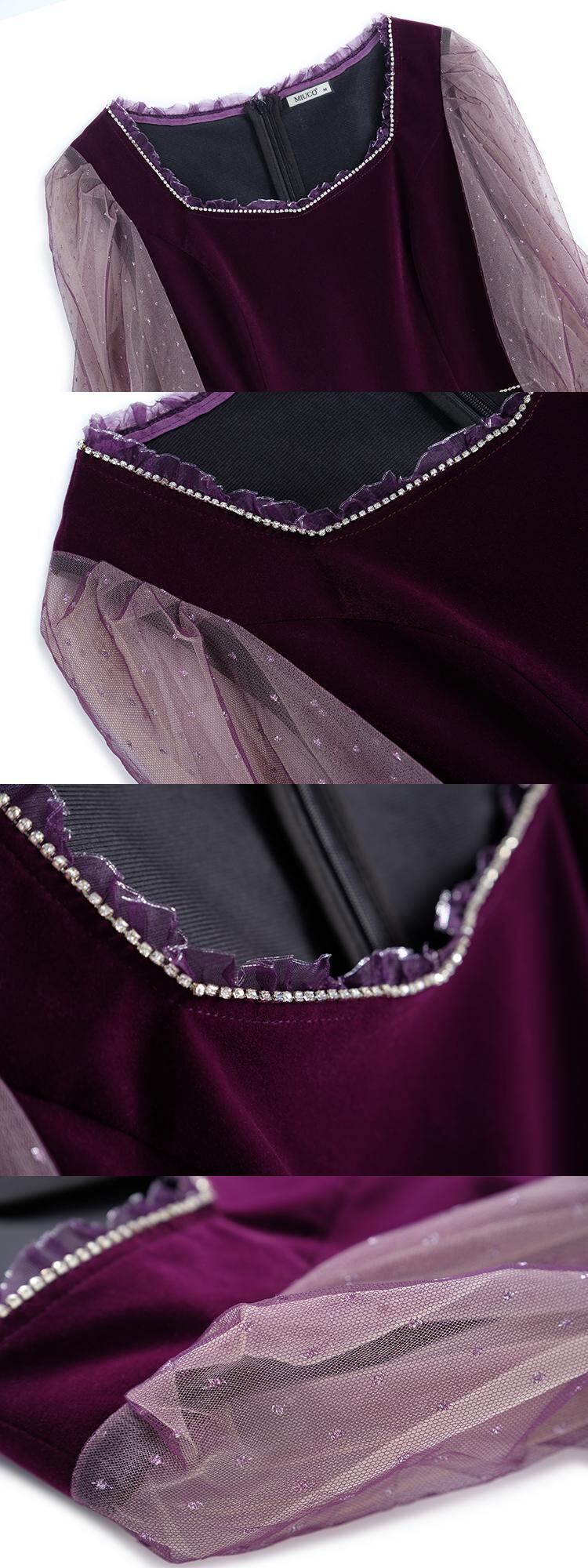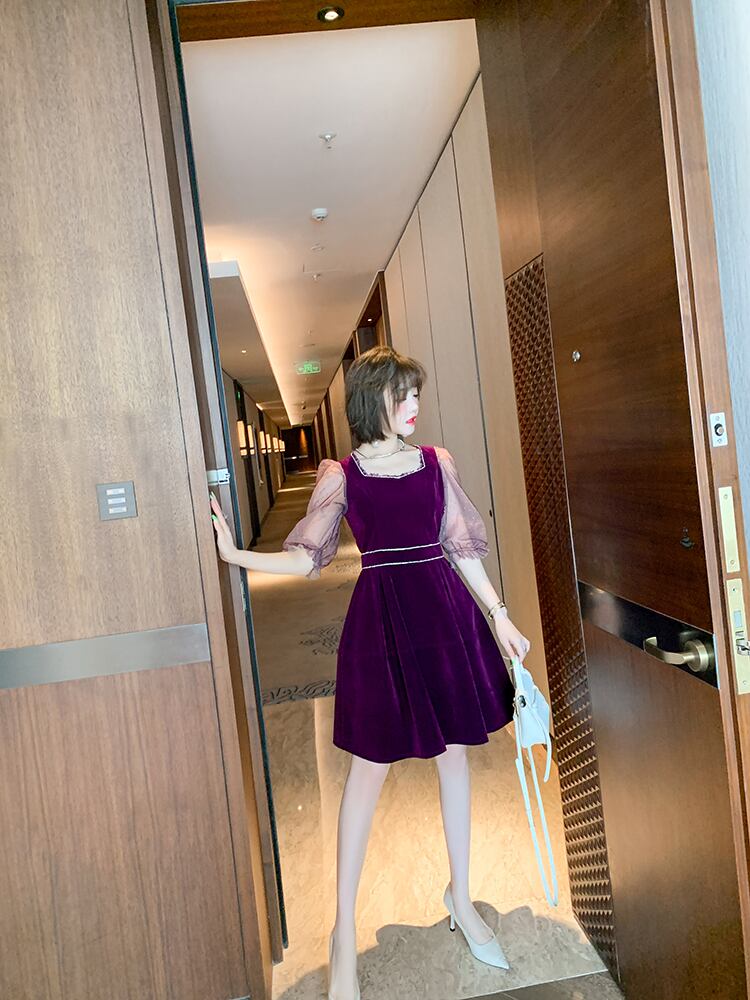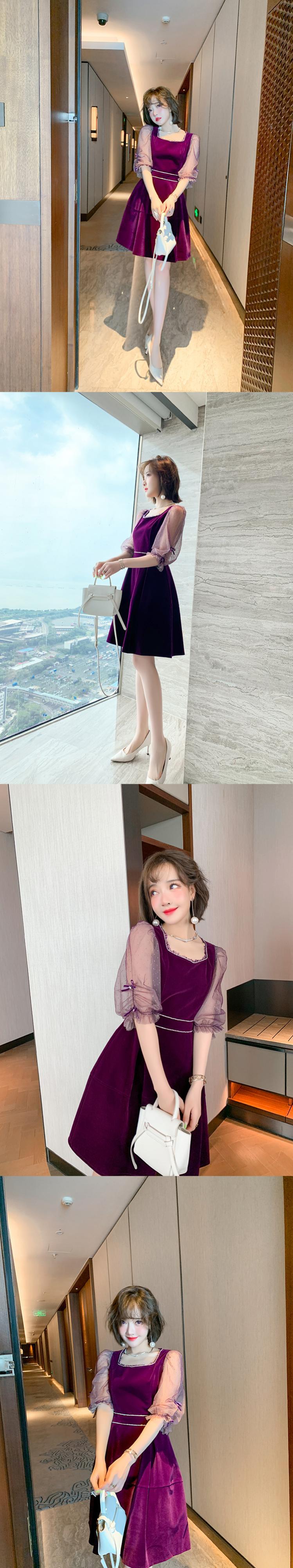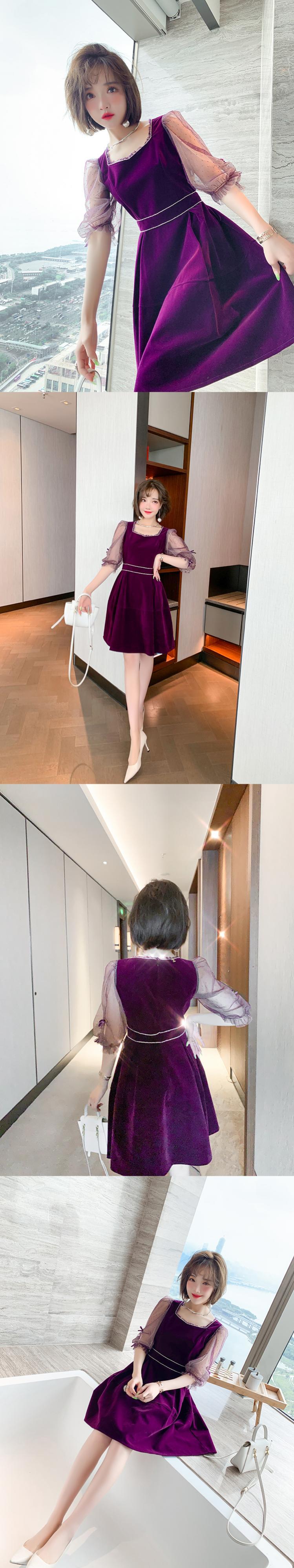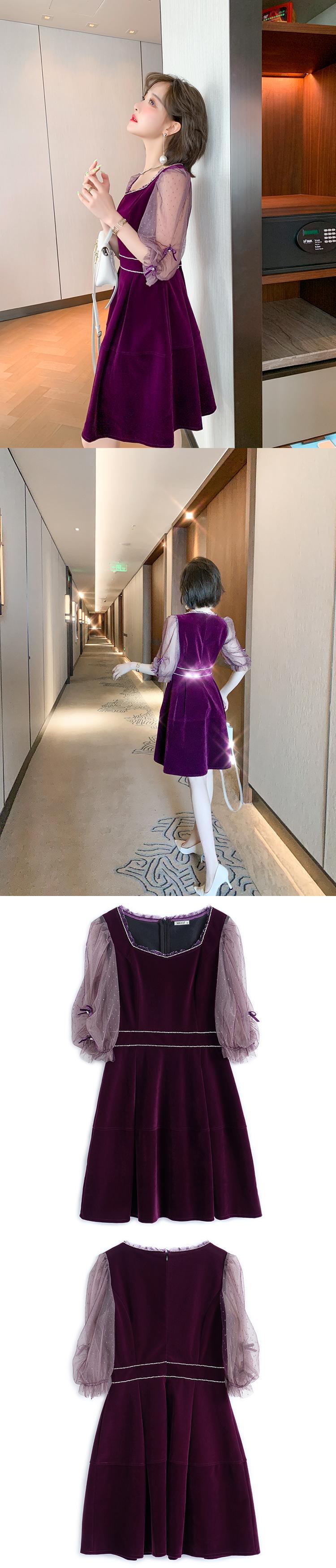 ゴールドメッシュカラーウェストドレス オータム 秋物 スクウェア ステッチ MIUCO51594203259
