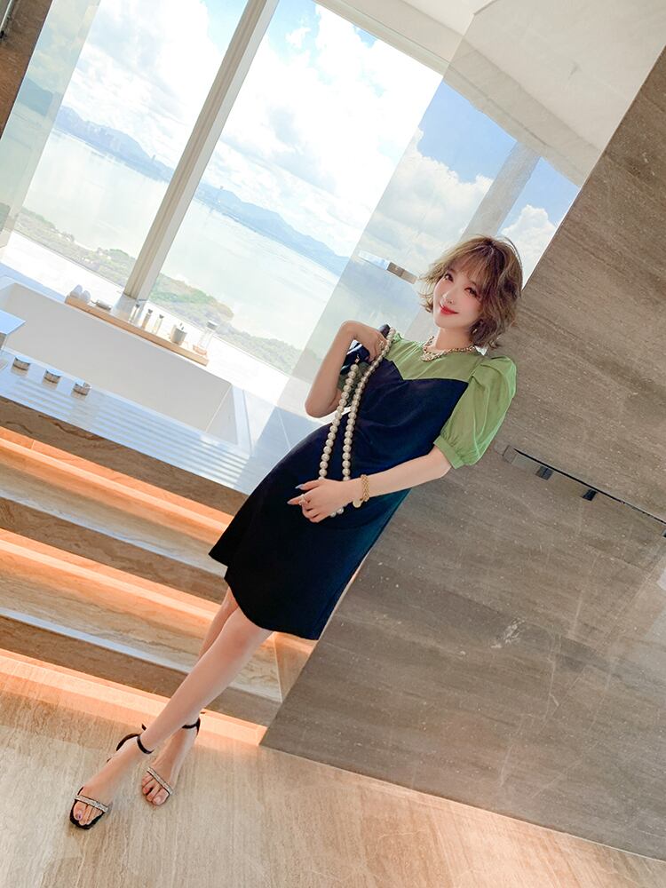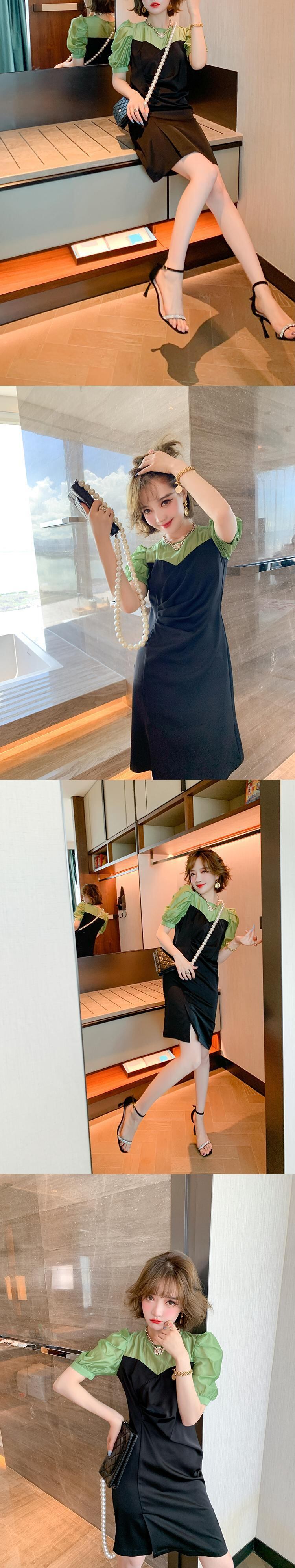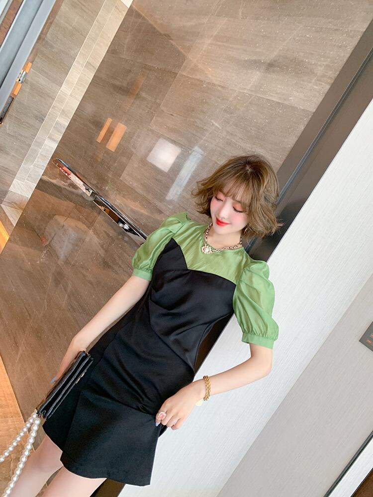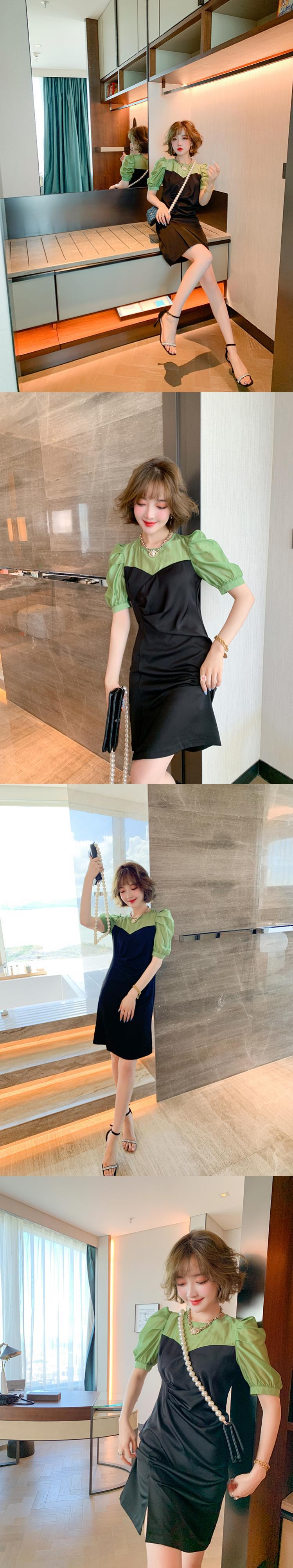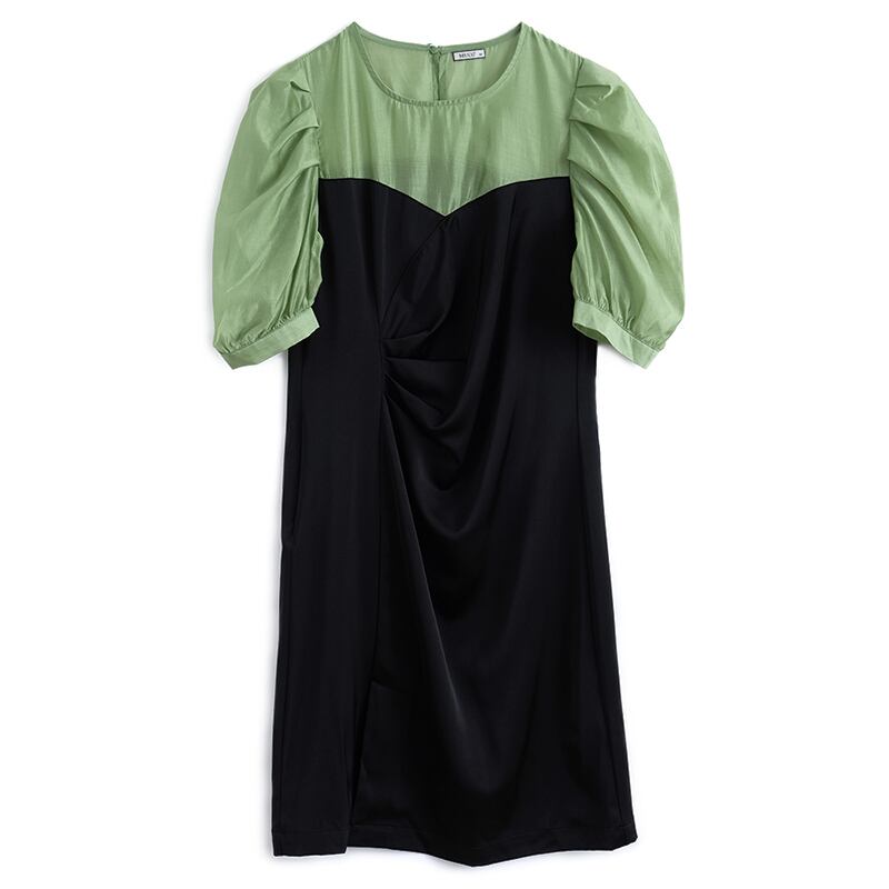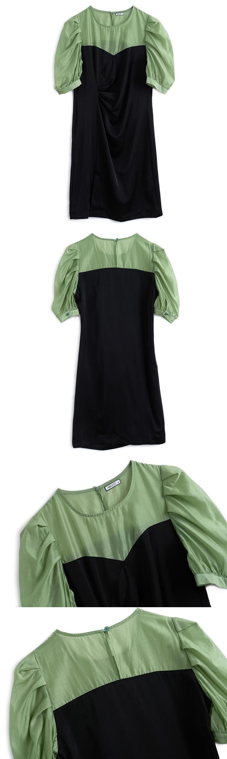 ラウンドネックウェストスリムドレス オータム エレガント 秋物 Oネック ステッチ MIUCO11326424019