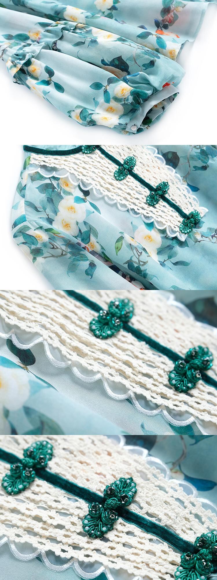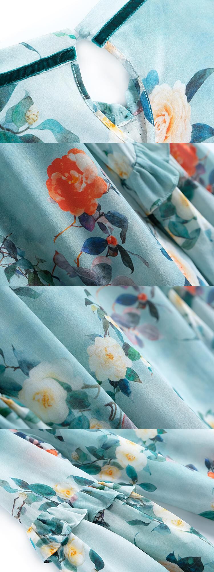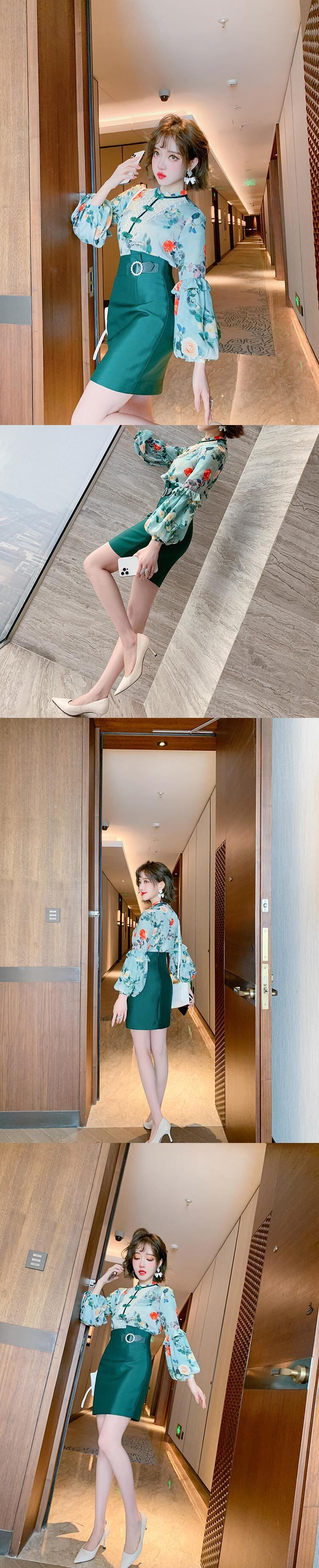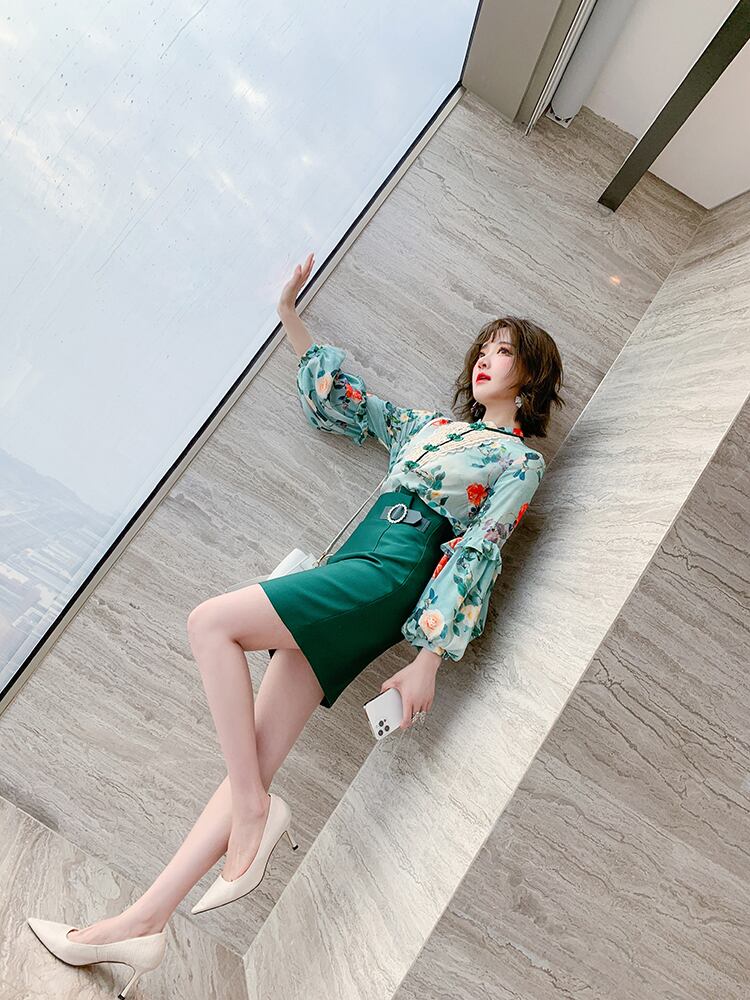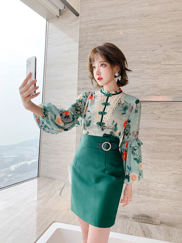スタンダードバックルカラープリントスリーブシャツ スプリング ランタンスリーブ レトロ 春物 MIUCO6343643062