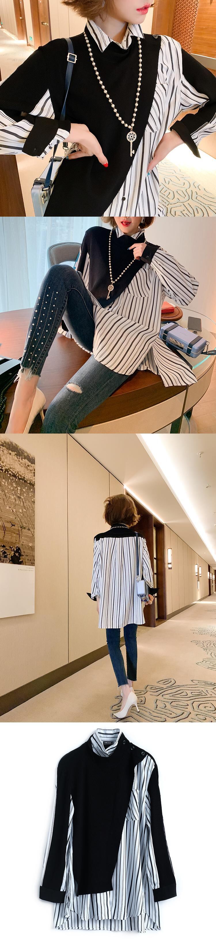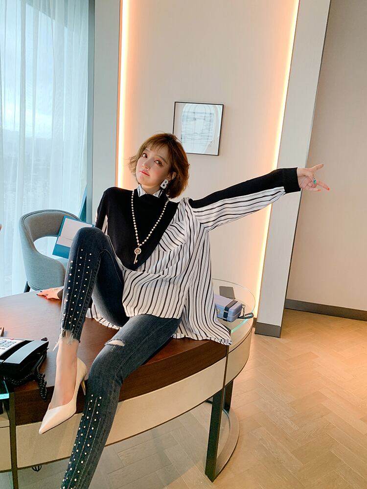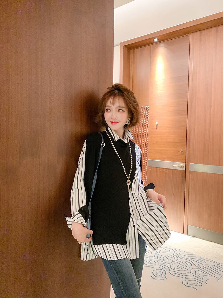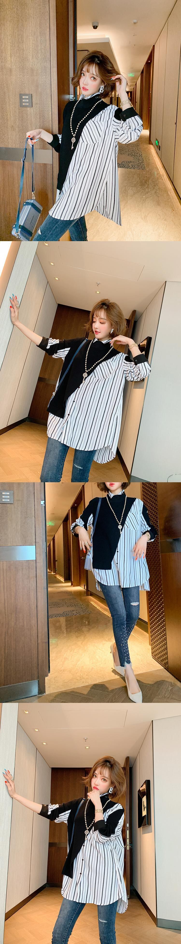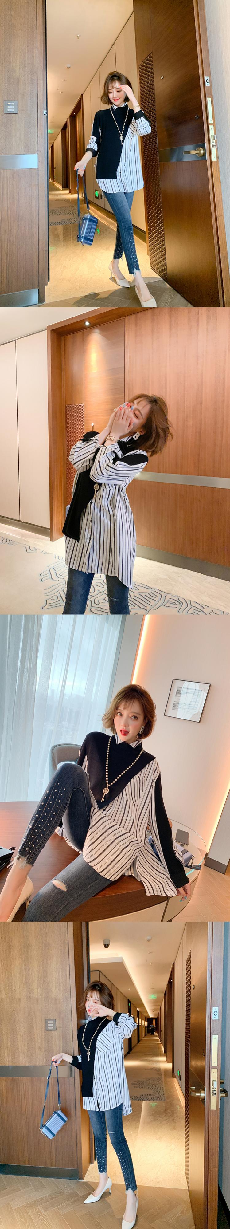 ニットルーズストライプシャツ オータム 秋物 ステッチ MIUCO57936447510