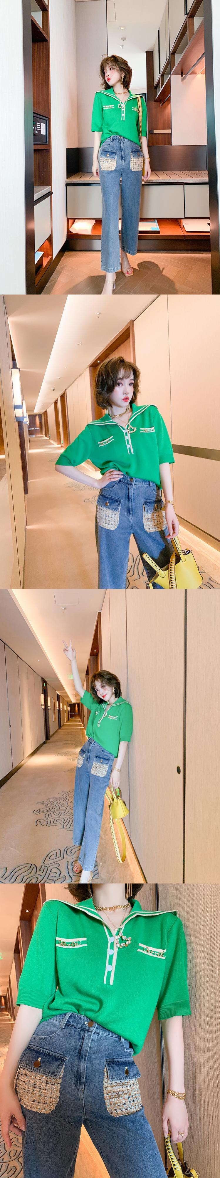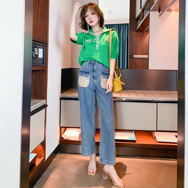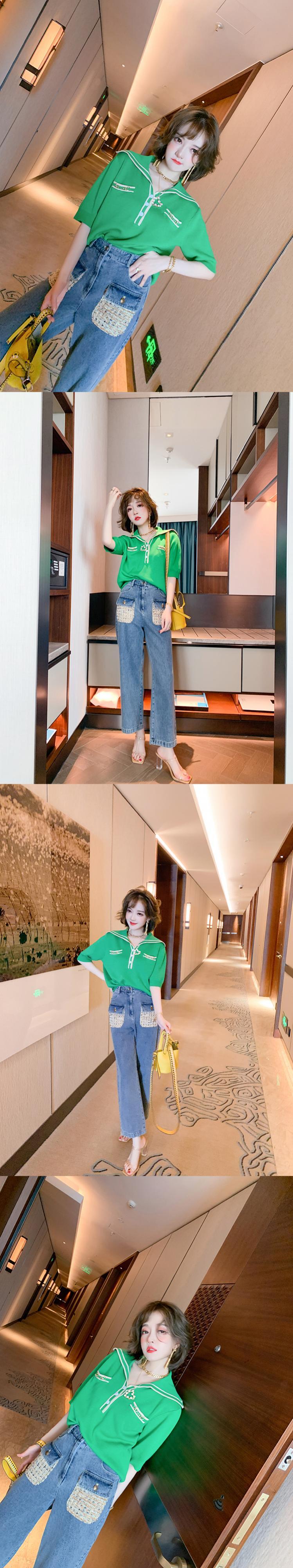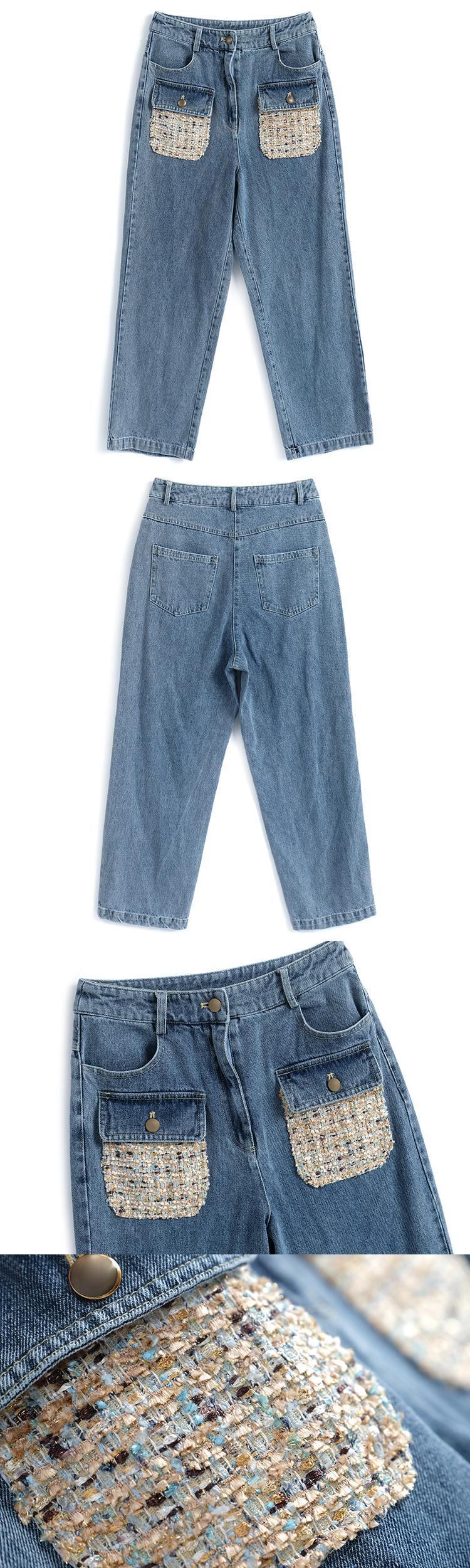 ハイウェストカラーツィードポケットルーズジーンズ サマースタイル 夏物 MIUCO86184234196