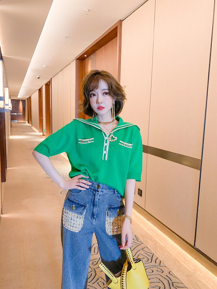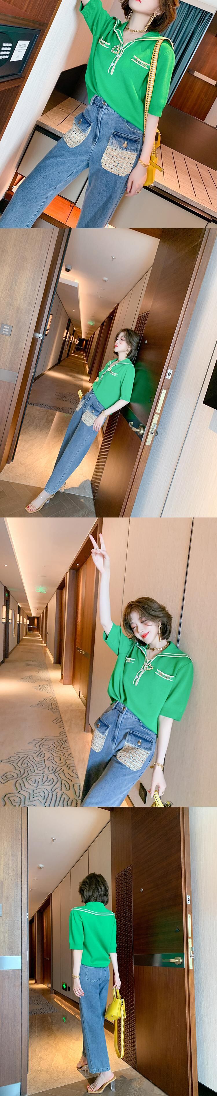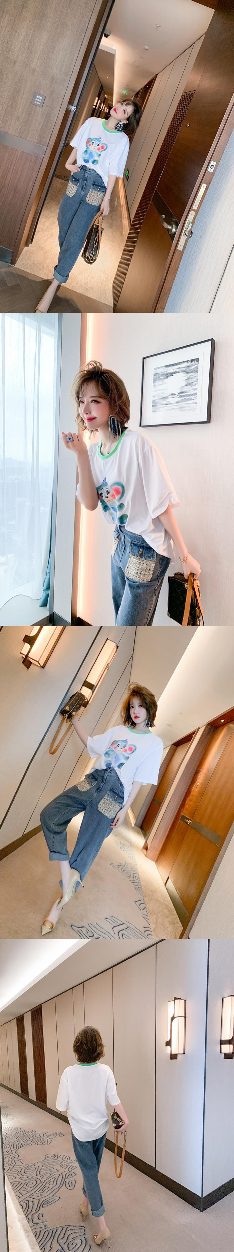 ハイウェストカラーツィードポケットルーズジーンズ サマースタイル 夏物 MIUCO86184234196
