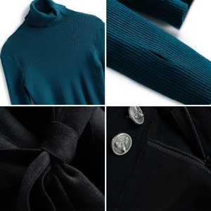 ニットシャツ ハイウェストウェストカジュアルブラックパンツ オータム 秋物 MIUCO14924275596