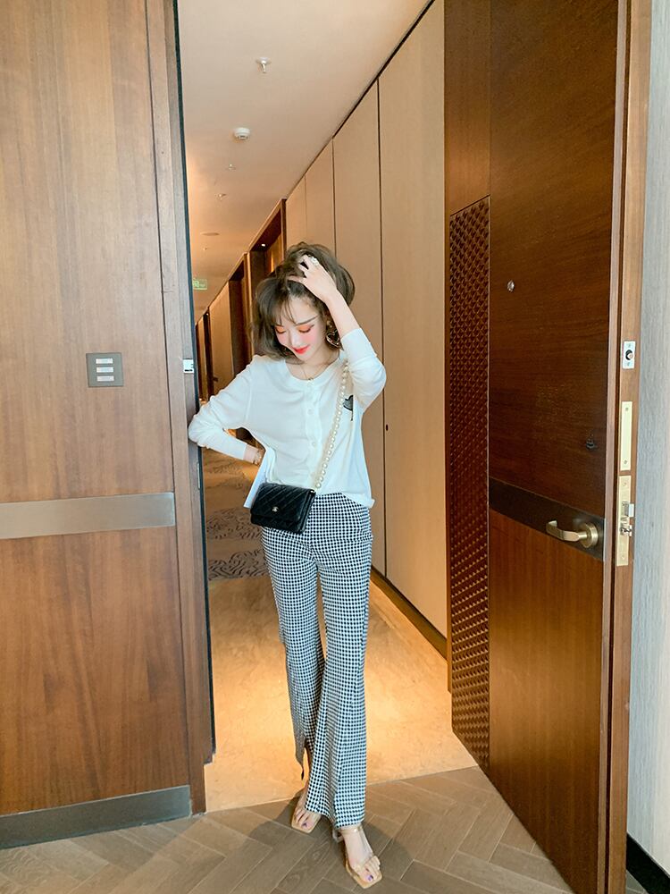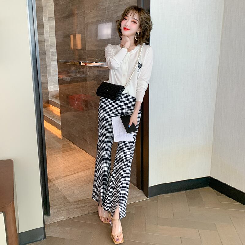 刺繍ラウンドネックニットカーディガンハイウェストウェストパンツ オータム 秋物 Oネック MIUCO65030378673
