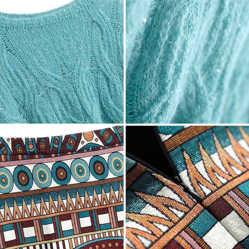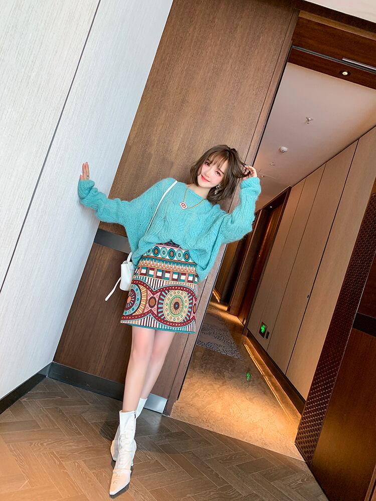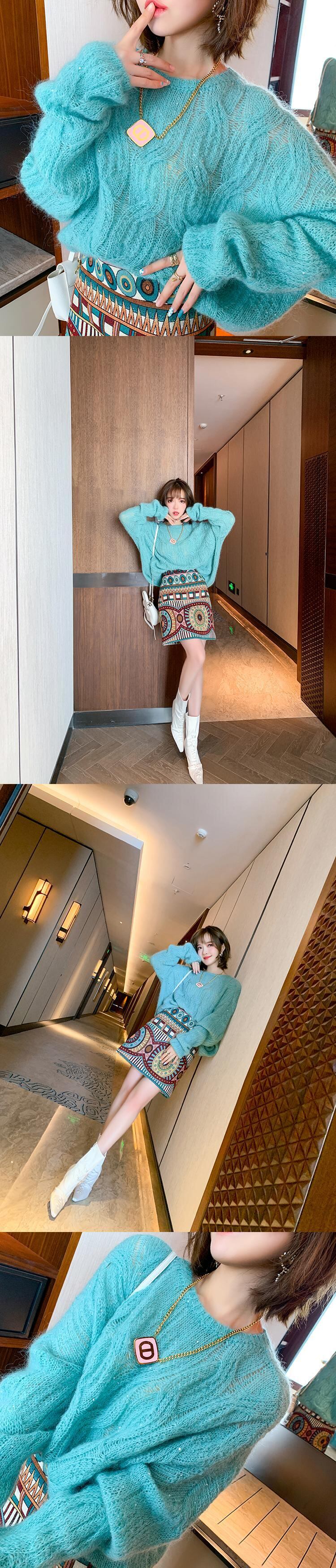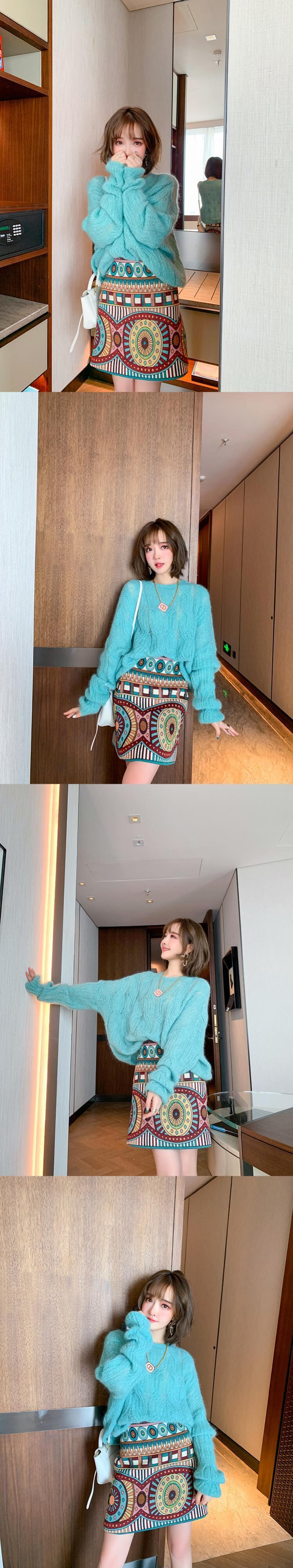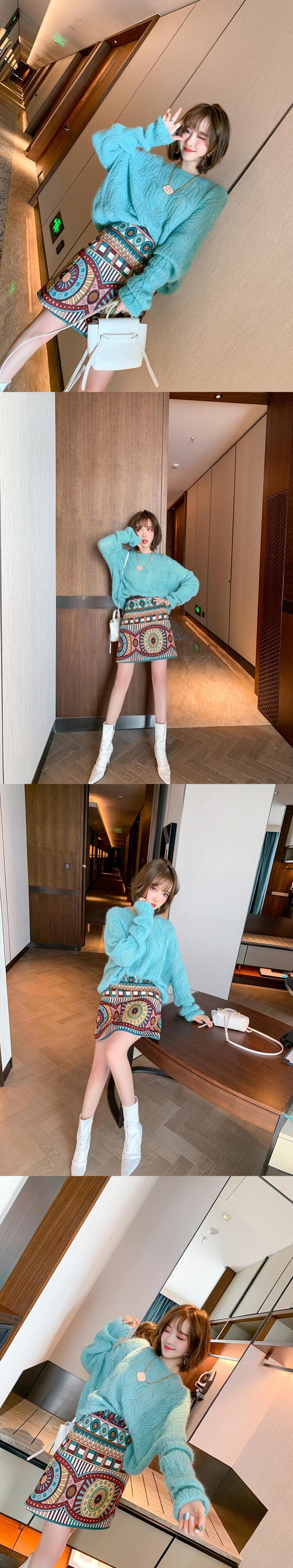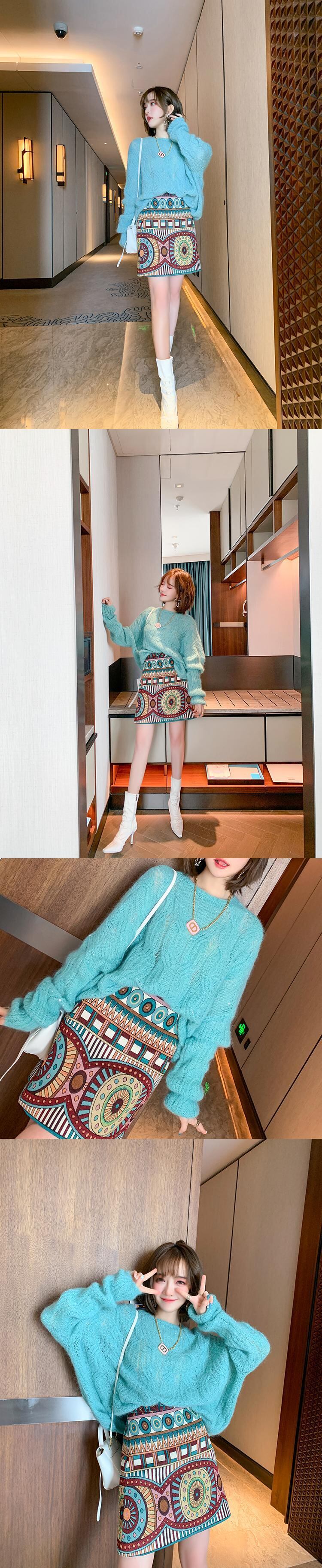 スパンコールパターンルーズセーター ジャカードAラインスカート セット ウィンター 冬物 MIUCO92345856619