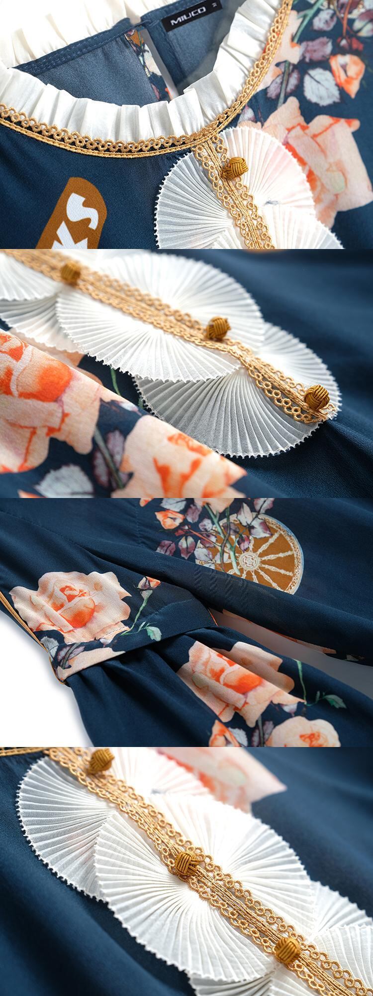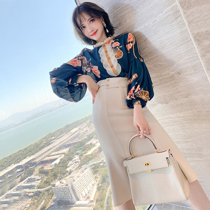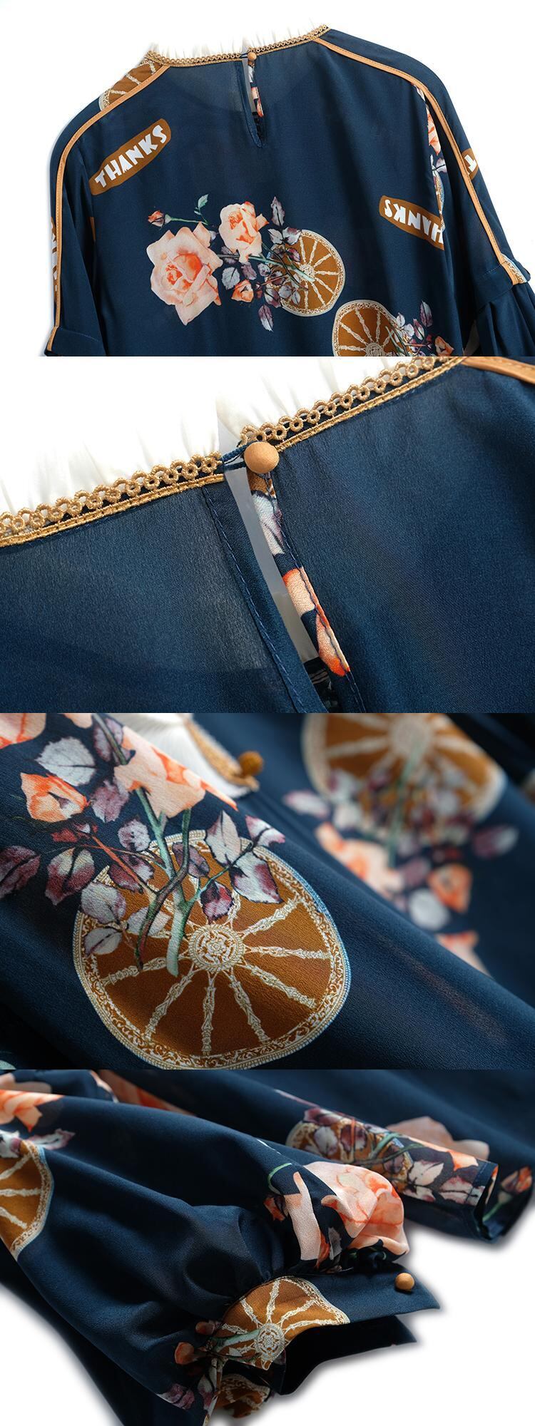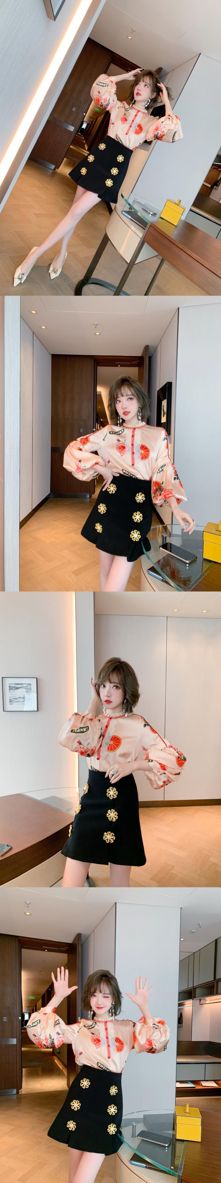 スタンダードプリントレースカラースリーブシャツ ランタンスリーブ レトロ MIUCO14965695693