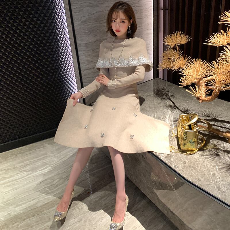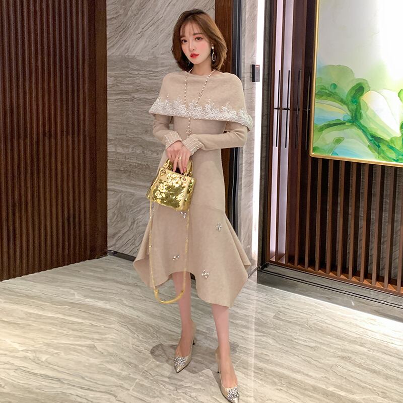 ウェストニットドレス オータム レッド 刺繍 秋物 MIUCO30801550150