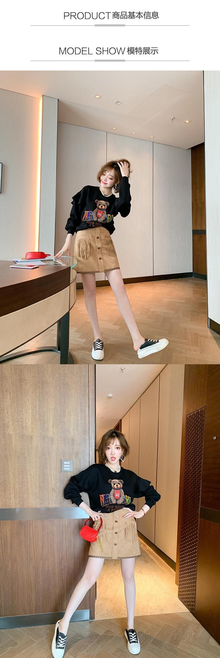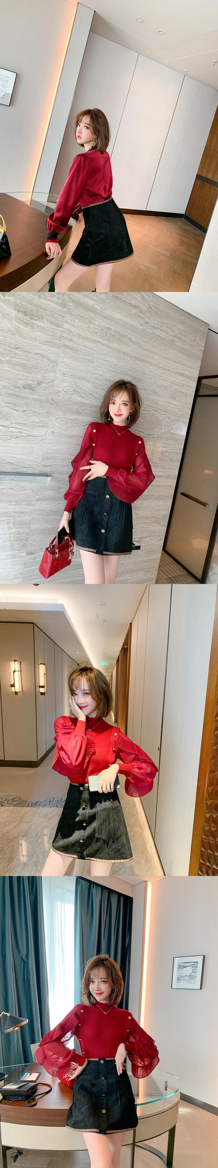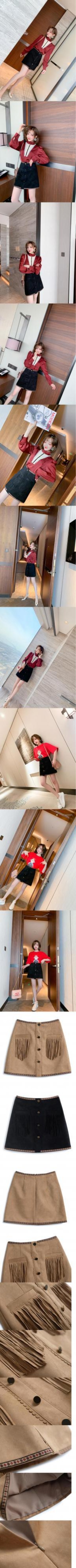 ハイウェストウェストスカート オータムスタイル レッド 刺繍 秋物 MIUCO13324759686